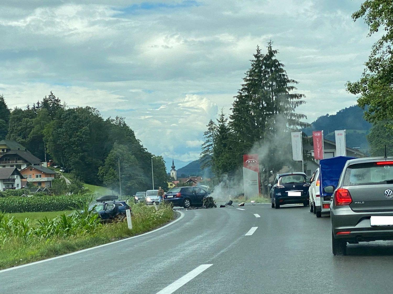 Ob 14.58 sta v naselju Bukovska vas, v občini Dravograd, trčili osebni vozili. Posredovali so poklicni gasilci KGZ Ravne na Koroškem in gasilci PGD Slovenj Gradec, ki so zavarovali kraj dogodka, odklopili akumulatorje, cestišče posuli z vpojnimi sredstvi ter pomagali pri oskrbi in prenosu poškodovanih oseb do reševalnih vozil.