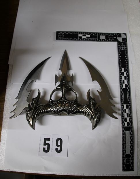 - ročno bombo in več kosov hladnega orožja – boksarjev in nožev.
