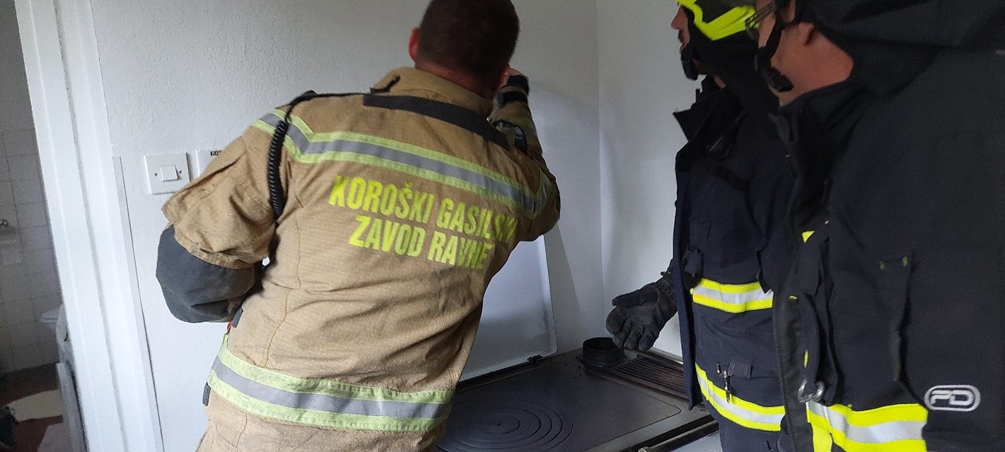 Ob prihodu na kraj so skupaj z gasilci KGZ Ravne pogasili goreče saje, očistili dimnik ter s termo kamero preverili okolico.