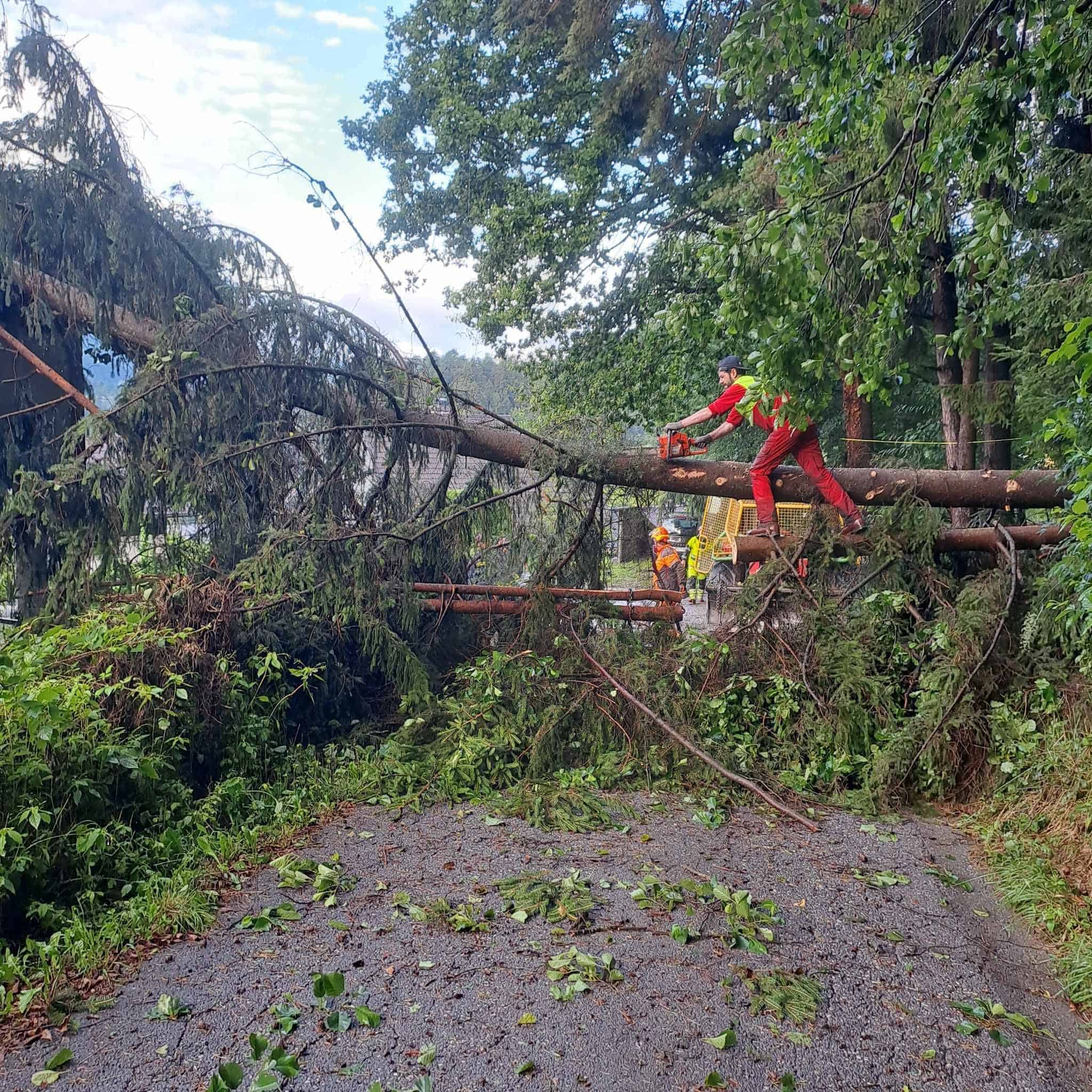 PGD Prevalje so od zgodnjih jutranjih ur odstranjevali posledice obsežnega vetroloma, ki je zajel občino Prevalje. Podrta drevesa, neprevozne ceste, odkrite strehe, požar na elektro vodu.....