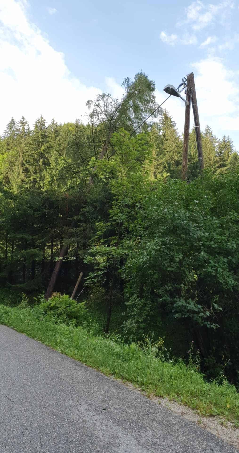 Ob 8.55 se je na Poljani, občina Prevalje, podrlo drevo na električni drog, kateri je zagorel. Gasilci PGD Prevalje in KGZ Ravne na Koroškem so požar pogasili in odstranili drevo.