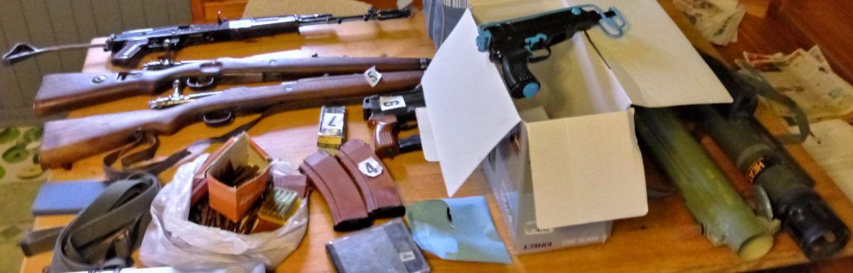 Pri hišni preiskavi so našli in zasegli več kosov orožja in streliva. In sicer dve avtomatski pištoli SHE 76 z nabojnikoma in lasersko napravo, dve puški Mauser, avtomatsko puško, dva nabojnika za avtomatsko puško, 44 ostrih nabojev različnih kalibrov, zračno puško Hatsu, ohišje raketometa Armbrust in ohišje ročnega raketometa M80 Zolja. Za orožje osumljeni ni imel dovoljenj.