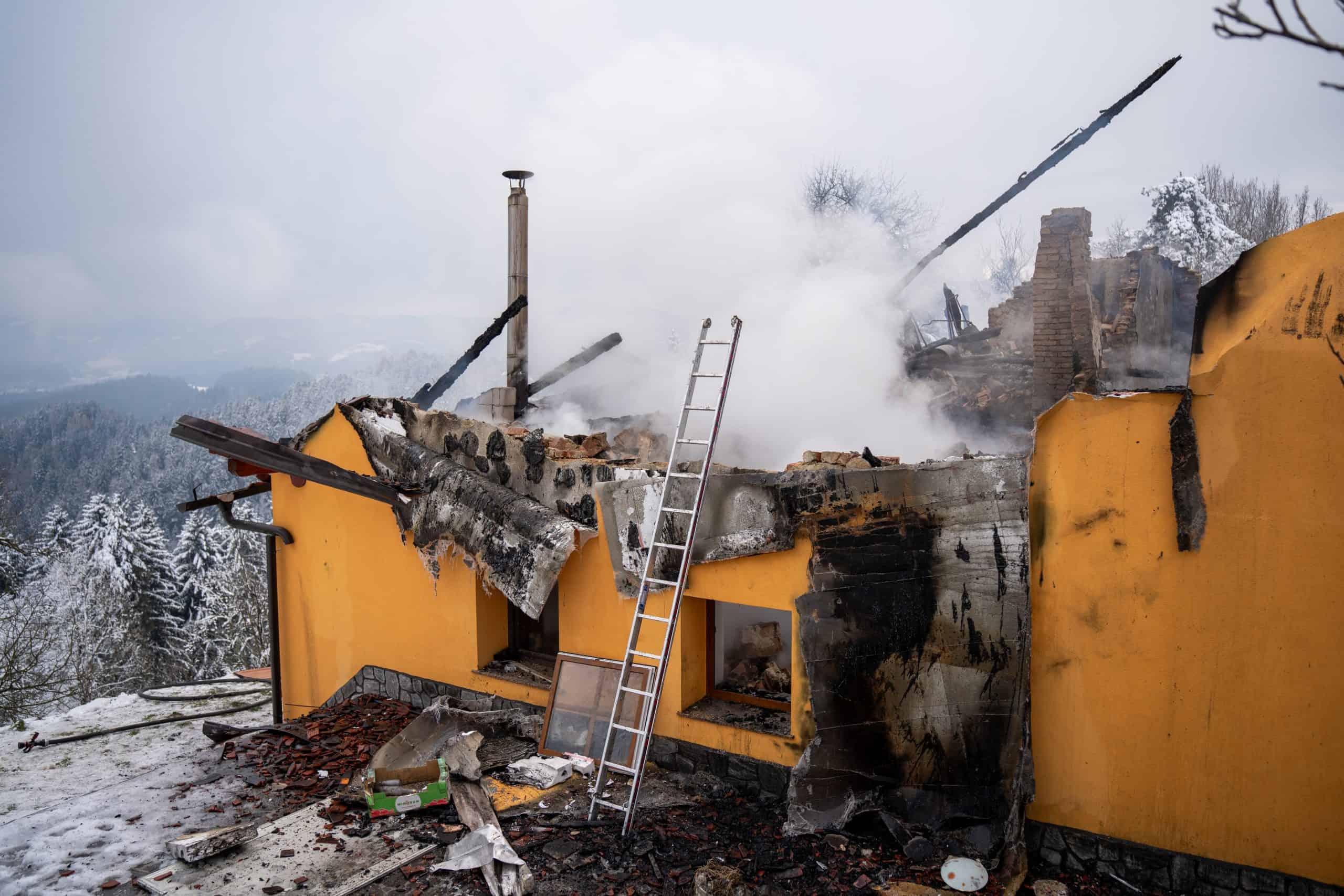 Kot smo že poročali, je grozljiv požar včeraj, 4. decembra 2023, v večernih urah zajel družinsko hišo na kmetiji Perjak v naselju Vrhe, v mestni občini Slovenj Gradec. Požar, ki je bil tako močan, da se ga je videlo celo do Mislinje, je v celoti uničil družinsko hišo.