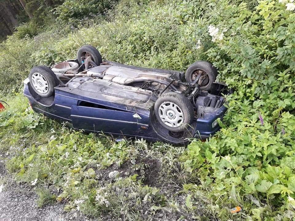 Ob 8.26 je na cesti Velenje - Mislinja v naselju Gornji Dolič, občina Mislinja, voznik z osebnim vozilom zapeljal s cestišča in se obrnil na streho.
