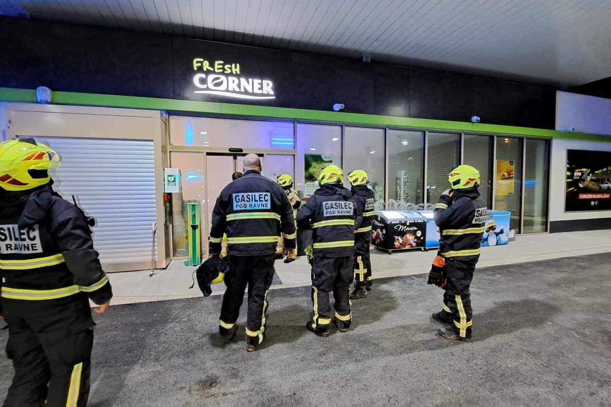 Posredovali so poklicni gasilci KGZ in PGD Ravne na Koroškem. Ugotovili so, da se je sprožila protivlomna dimna zavesa . Zaradi tega je bil prostor zadimljen, ni pa prišlo do požara.
