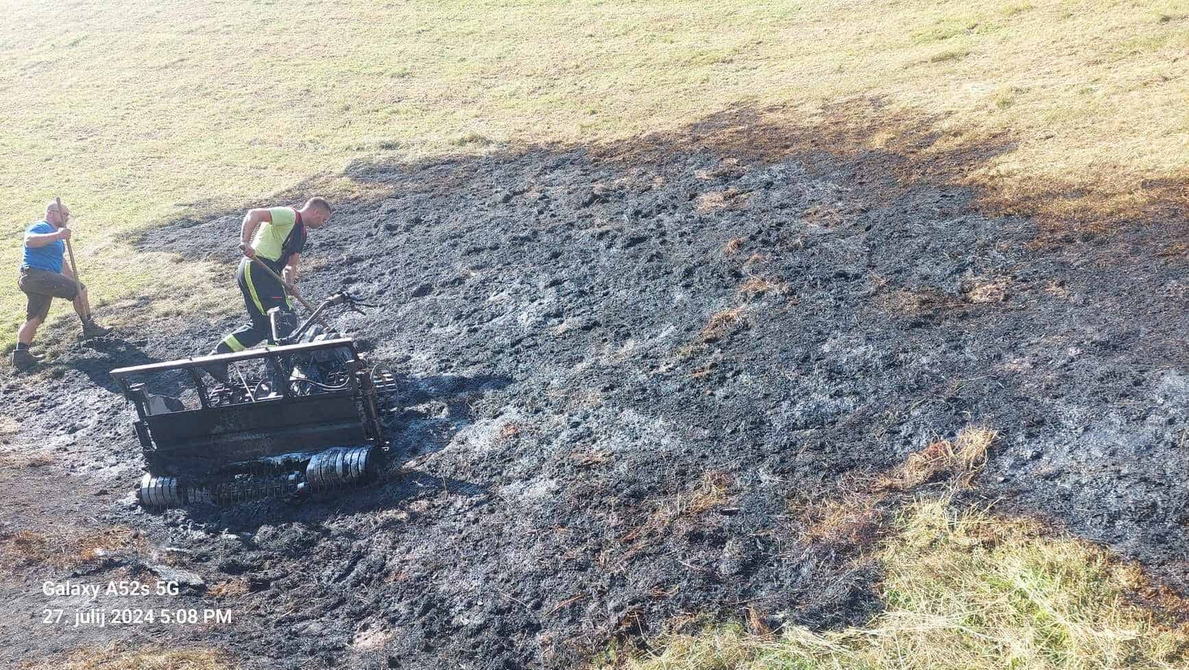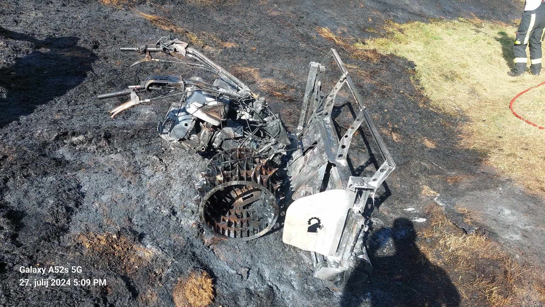 Nastala je materialna škoda, kmetijski stroj je popolnoma uničen.