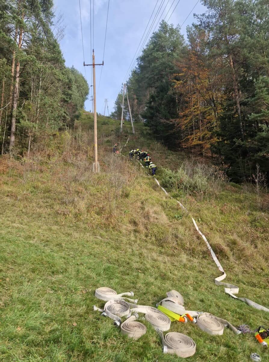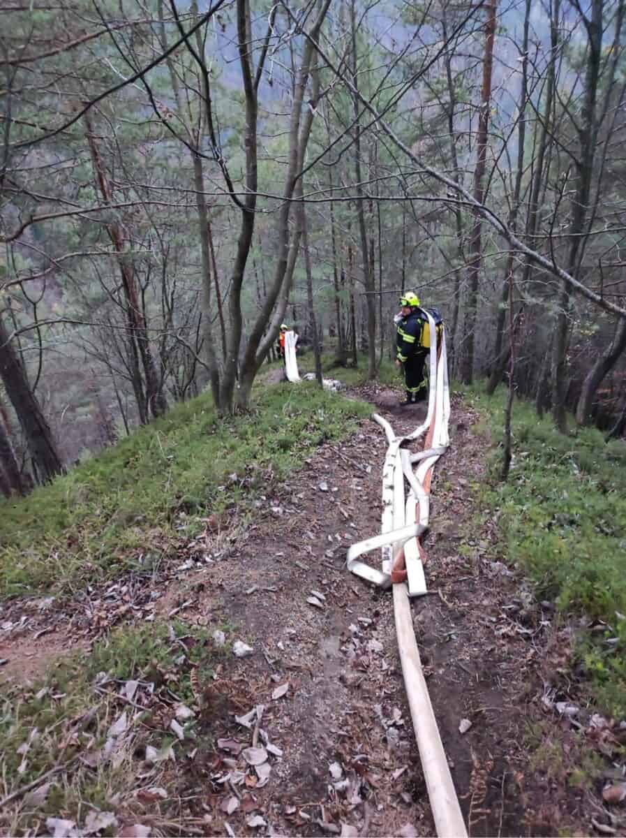 "Današnja pomoč gasilcem iz Mežice pri gašenju gozdnega požara na zelo težko dostopnem terenu. Sodelovali smo s 17 gasilci in 1 gasilec z dronom za pregled območja in dostopnih poti. Samo zahtevnost intervencije opisuje že to, da je do samega požara bilo potrebno položiti cca 500 m cevi," so po intervenciji ob fotografijah na Facebooku zapisali gasilci PGD Prevalje.