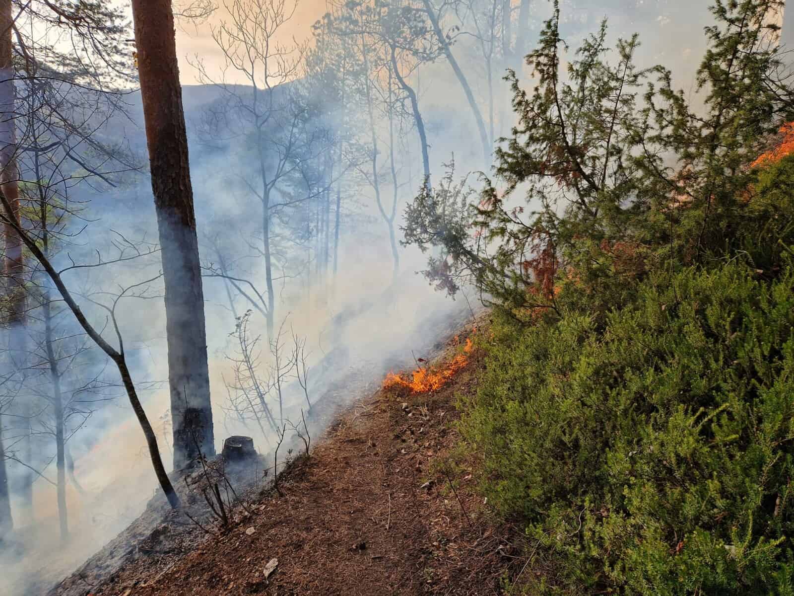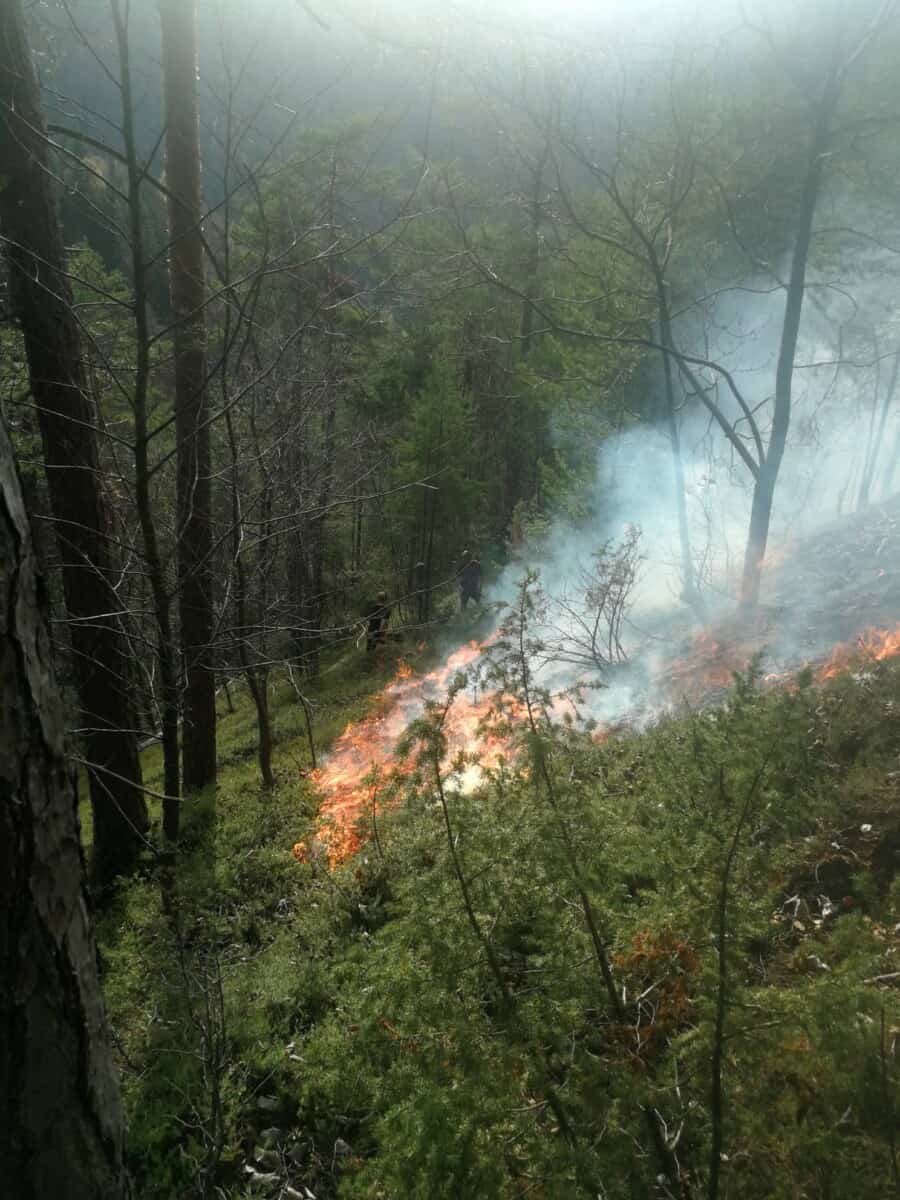 Po naših podatkih je zagorel gozd proti Platu, in sicer med kmetijama Orešnik in Ober. Čeprav je bilo predvideno, da bo zaradi težko dostopnega terena, na kraju dogodka posredoval tudi helikopter, to ni bilo potrebno.