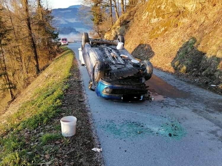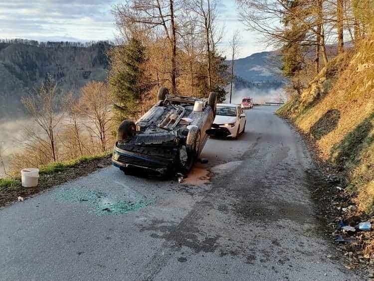 Ob 6.23 je v naselju Ojstrica osebno vozilo zapeljalo v obcestni jarek in se prevrnilo na streho. Gasilci KGZ Ravne na Koroškem so zavarovali kraj dogodka, vozilo postavili na kolesa ter počistili iztekle tekočine.