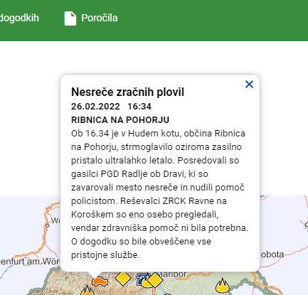 Ob 16.34 je v Hudem Kotu, občina Ribnica na Pohorju, strmoglavilo oziroma zasilno pristalo ultralahko letalo. Posredovali so gasilci PGD Radlje ob Dravi, ki so zavarovali mesto nesreče in nudili pomoč policistom.