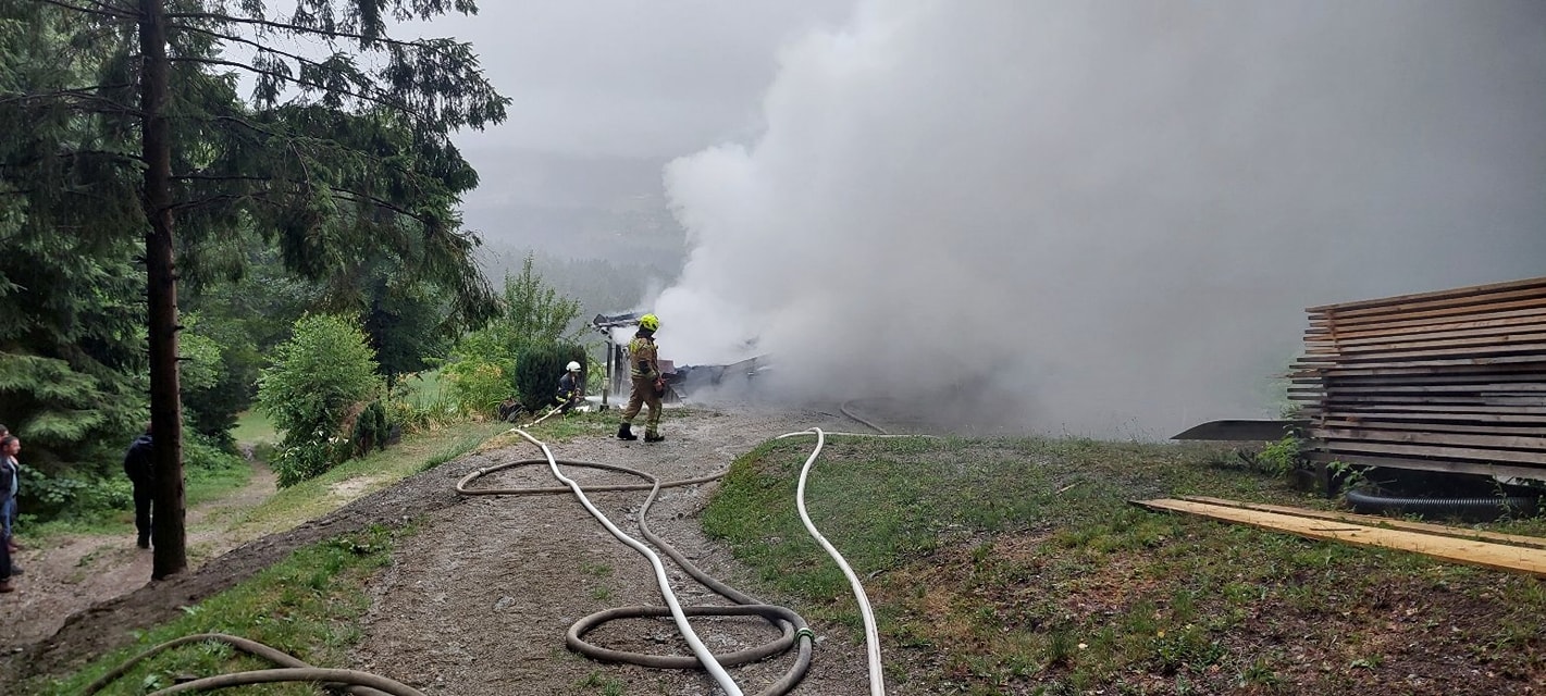Gasilci so odhiteli na intervencijo na požaru vikenda in ko so prišli na kraj dogodka, je bil objekt že v celoti zajet z ognjem.