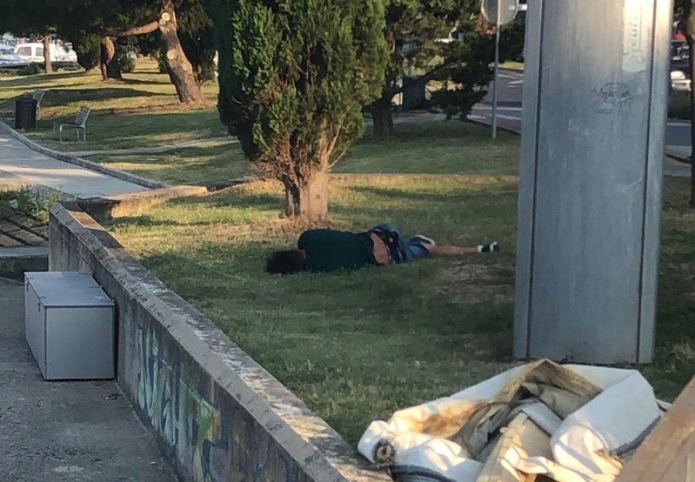 "Le nekaj metrov stran, natančneje 200, pa je očividka zalotila drugega mlajšega moškega, kako 'meni nič, tebi nič', spi na travi," je pod fotografijo spečega mladeniča zapisano na Regionalobala.si.