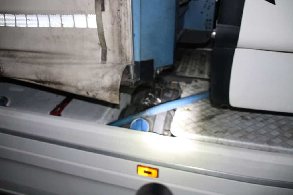 Srbskemu vozniku sta s poškodovanjem pokrova rezervoarja povzročila za okoli 100€ škode.