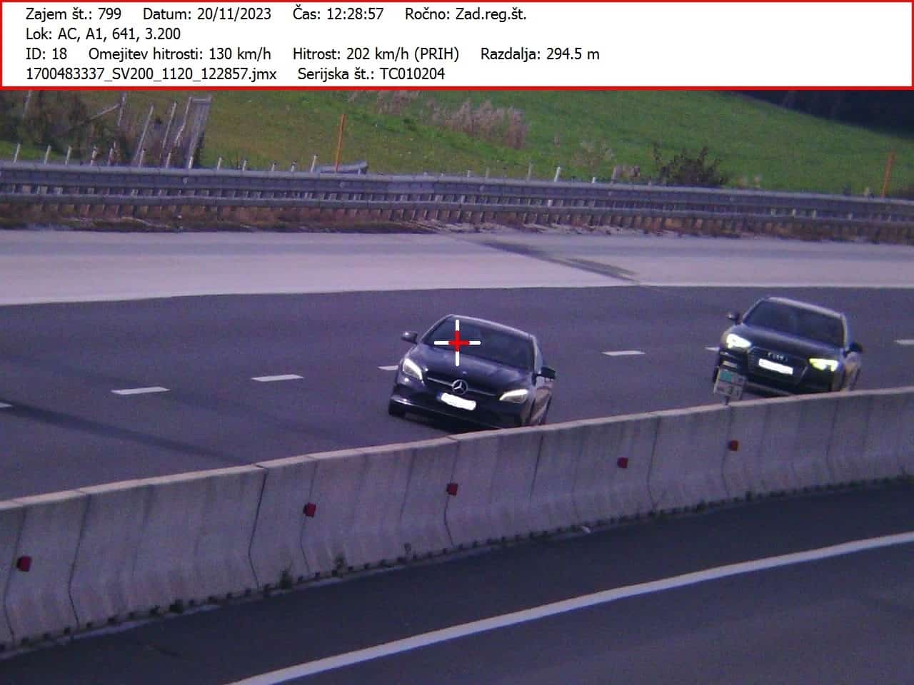Med izvajanjem meritev hitrosti na avtocesti A1, izven naselja Gotovlje, iz smeri Šentruperta proti Celju, kjer je hitrost vožnje s prometnim znakom omejena na 130 km/h, so zaznali romunskega voznika, ki je vozil s hitrostjo 202 km/h. Za storjen prekršek sledi plačilni nalog v višini 1.200 € in izrek 9. kazenskih točk.