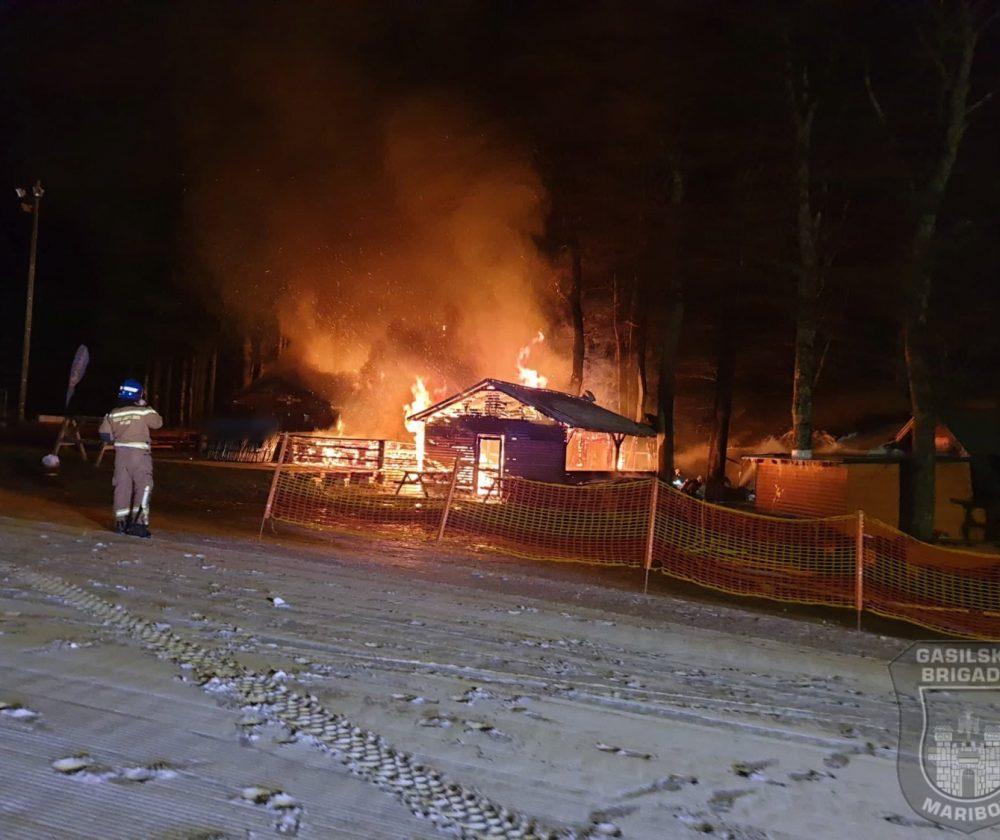 PREBERITE TUDI: Ponoči zagorelo na Mariborskem Pohorju v bližini smučišča, uničenih več objektov (FOTO)