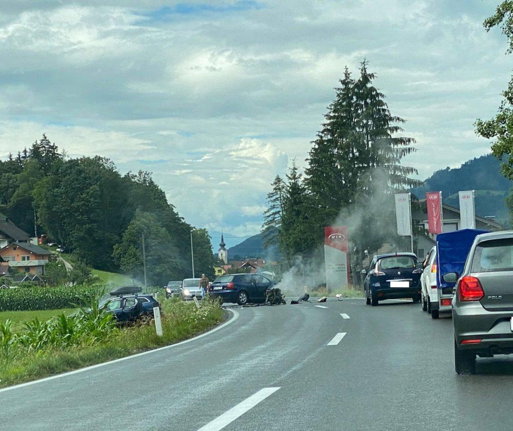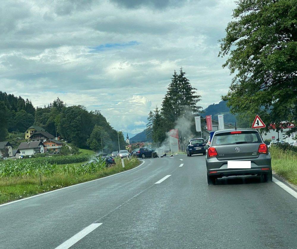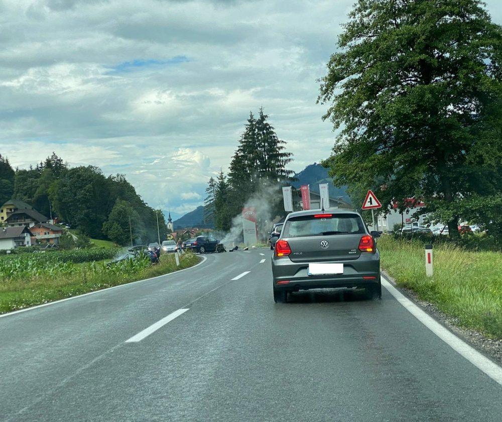 Okoli 15. ure se je na relaciji Slovenj Gradec - Dravograd pripetila prometna nesreča dveh osebnih vozil.