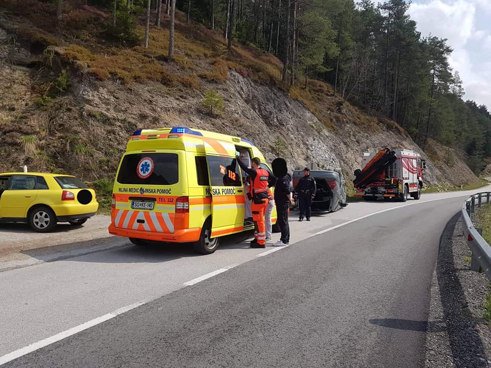 Danes dopoldne, ob 11:29 je v Srednjem Doliču, občina Mislinja, osebno vozilo zapeljalo na nabrežino in se prevrnilo na streho.