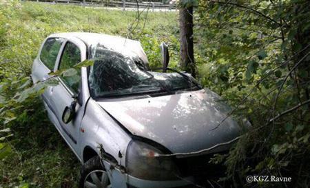 Danes, 12.8.2017 ob 8.10 je na cesti Kotlje–Slovenj Gradec, občina Ravne na Koroškem, voznica z osebnim vozilom trčila v obcestno ograjo in zapeljala s cestišča.