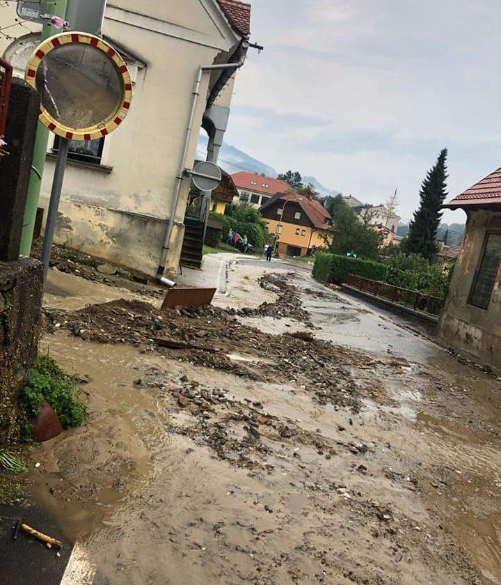 Močnejše nevihte z nalivi, točo, vetrom in udari strel so se včeraj razbesnele nad številnimi deli Slovenije, med drugim tudi nad Koroško. Najhuje je bilo na območju Vuzenice in Mute, kjer so meteorne vode zalile več objektov, cestišč in parkirišč, sprožile pa so tudi nekaj plazov, o čemer smo na kratko že poročali TUKAJ. Župan Občine Muta Mirko Vošner pa je za danes zjutraj sklical tudi izredno sejo. Vreme z nalivi in točo pa se je razbesenlo tudi nad delom Črne na Koroškem, predvsem na območju Javorja, o čemer smo že tudi pisali.