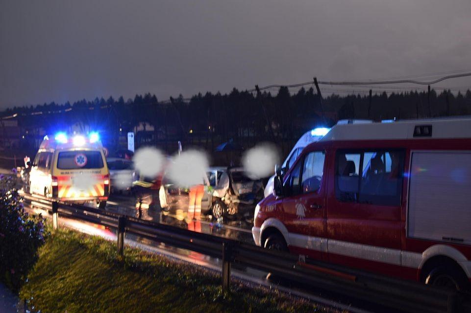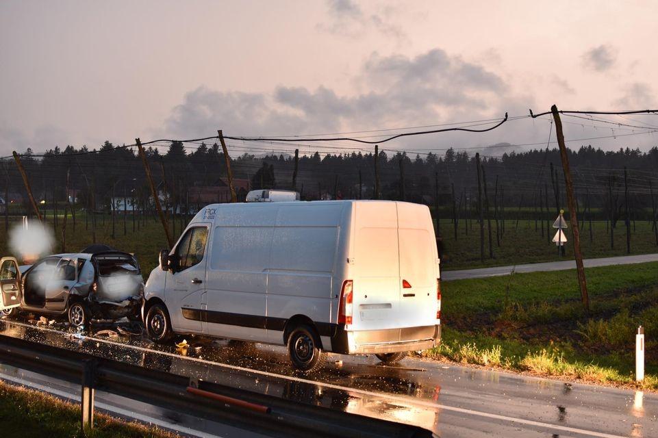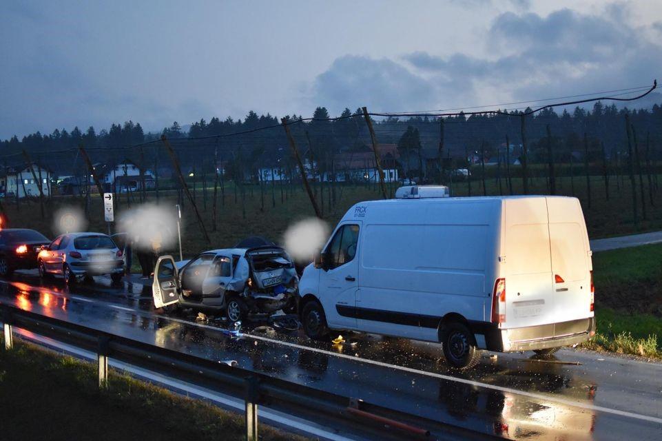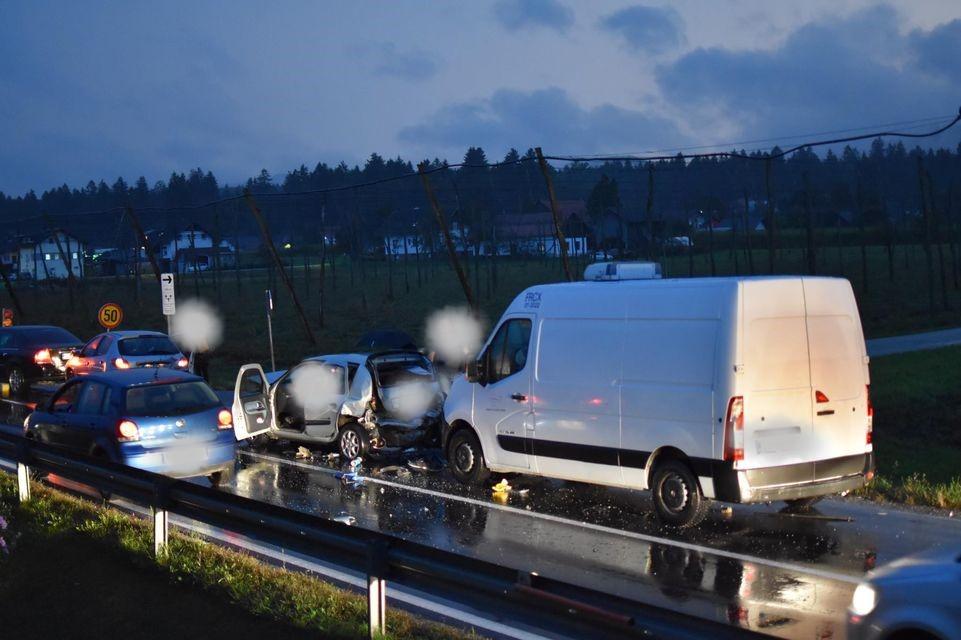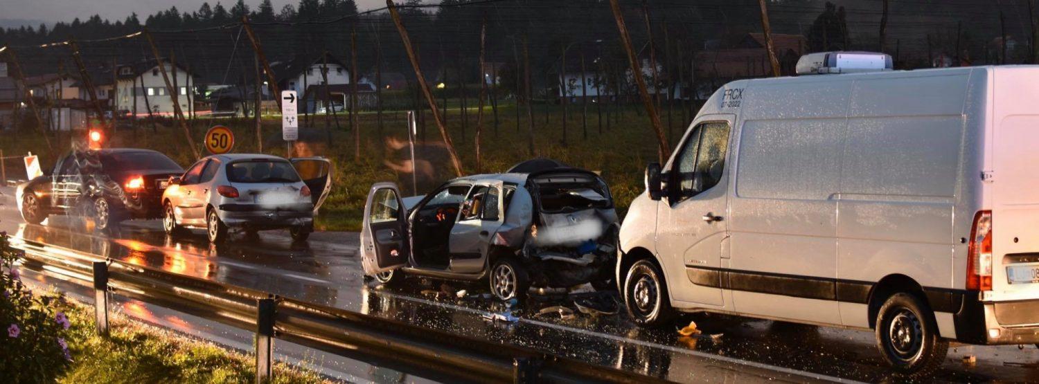 Ob 18.36 je v Šmartnem pri Slovenj Gradcu trčilo več vozil. Gasilci PGD Slovenj Gradec so zavarovali kraj nesreče, odklopili akumulatorje, s tehničnim posegom rešili ukleščeno osebo iz vozila, razsvetljevali kraj, z absorbentom očistili po vozišču razlite motorne tekočine ter nudili pomoč policistom in reševalcem NMP ZRCK.