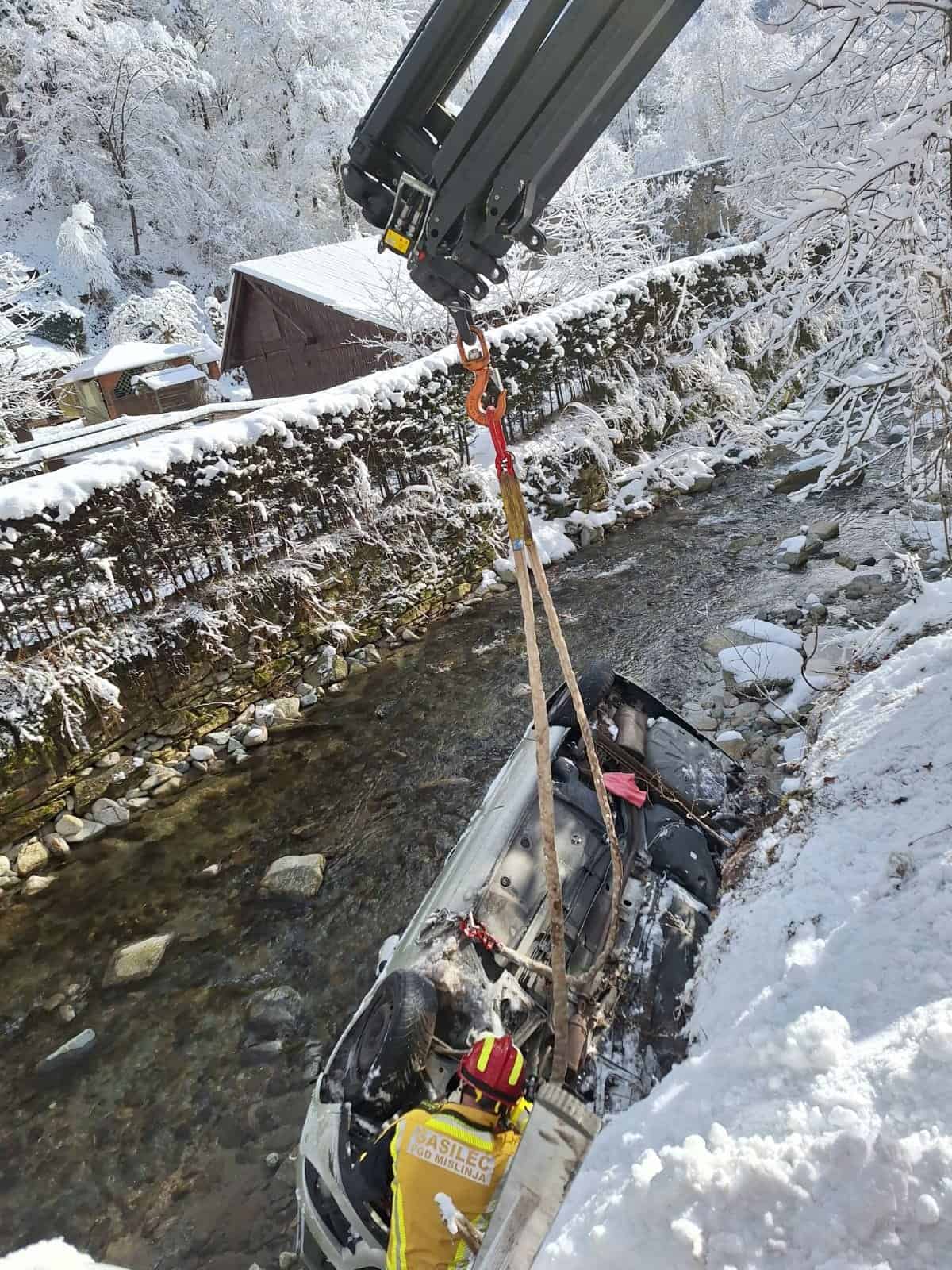 Na kraju nesreče so posredovali gasilci PGD Mislinja in PGD Slovenj Gradec, ter vozilo s pomočjo dvigala dvignili nazaj na cesto.