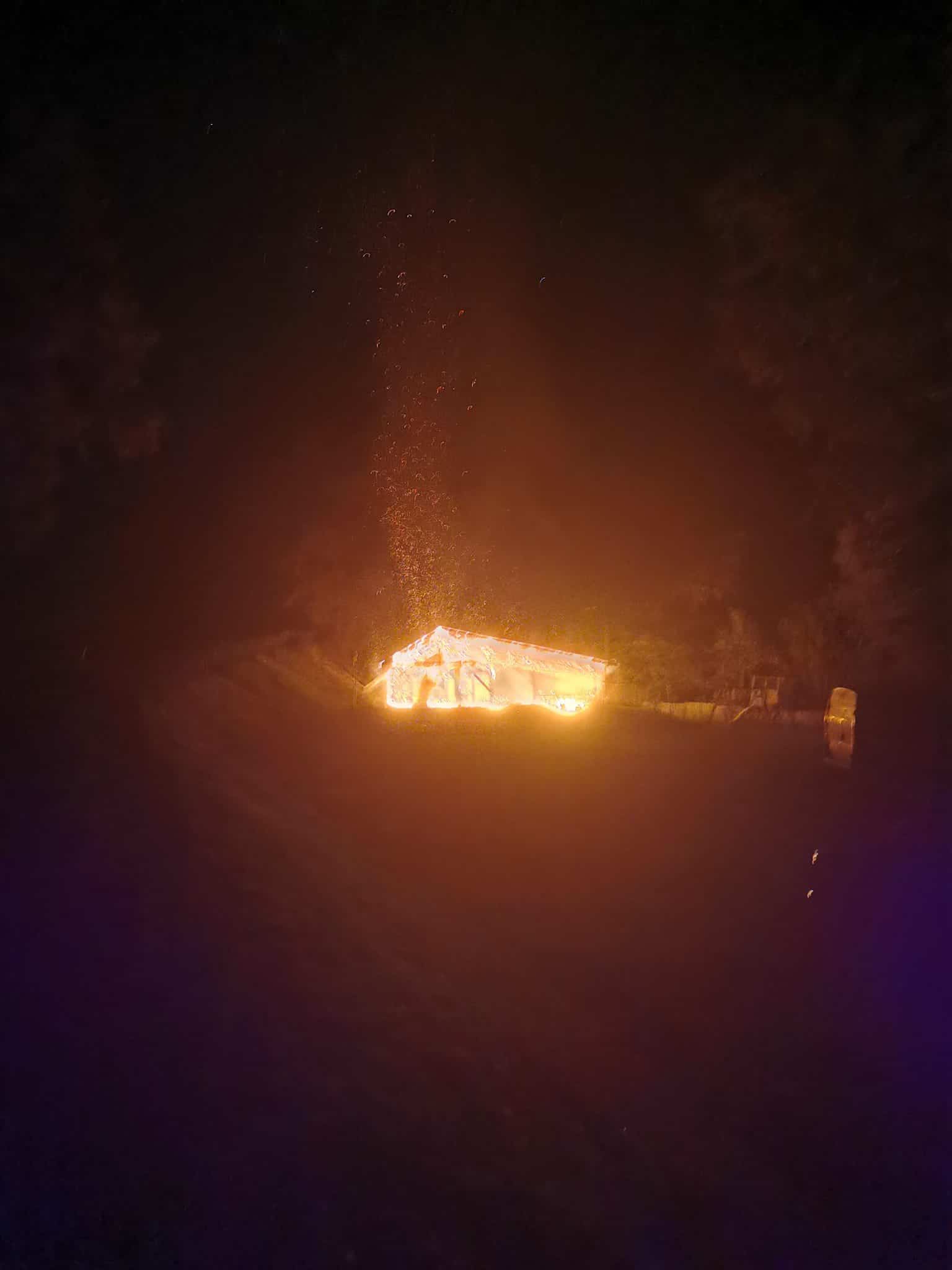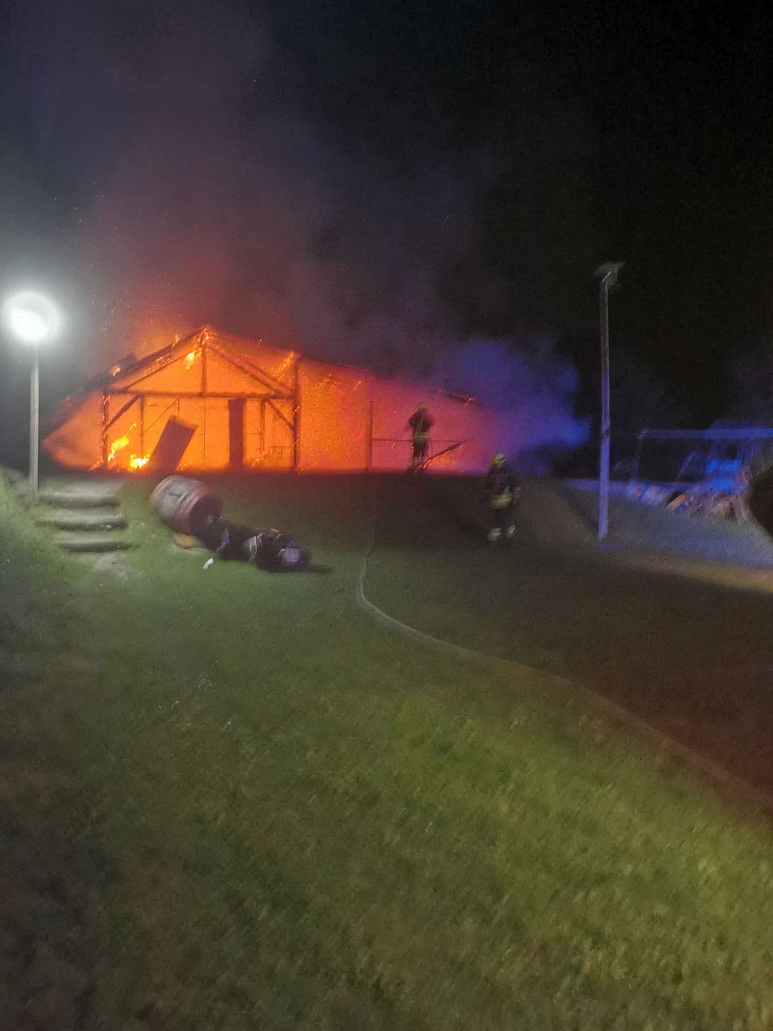 Gasilci so požar pogasili ter iz prostora iznesli več plinskih jeklenk. Objekt je v celoti uničen.