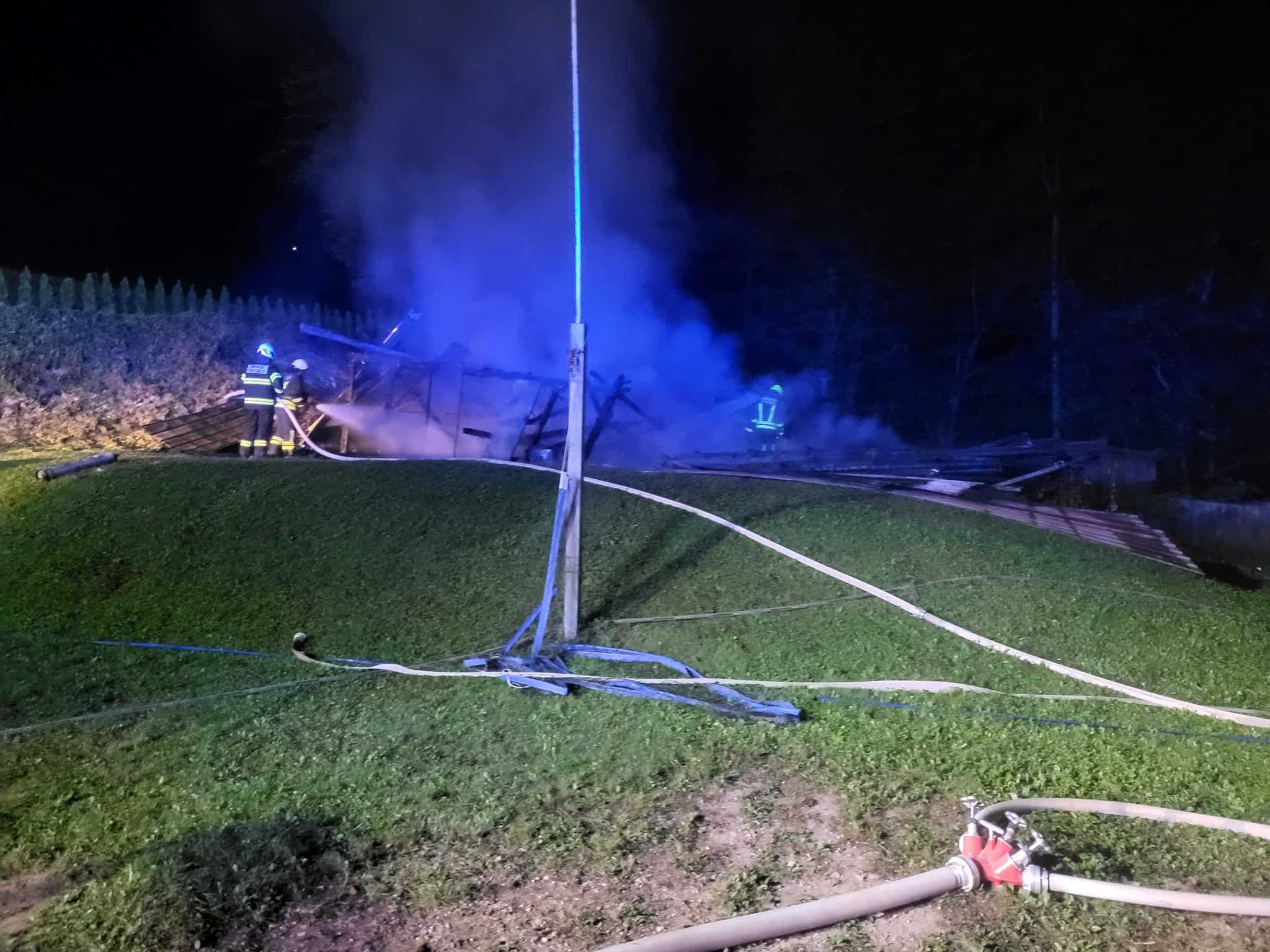 Ob 04.05 je v naselju Podgorje, v občini Slovenj Gradec, iz neznanega vzroka zagorel lesen objekt na piknik prostoru.