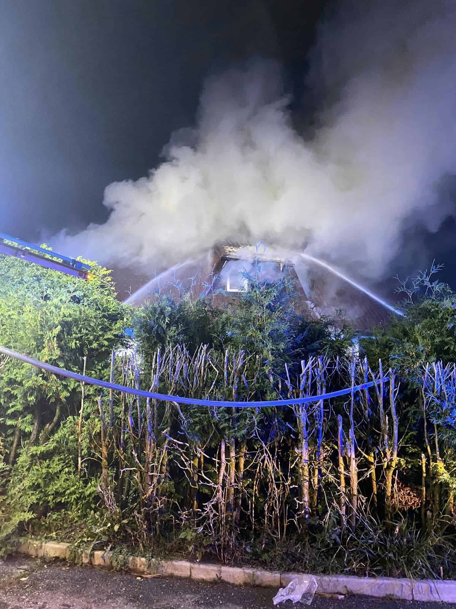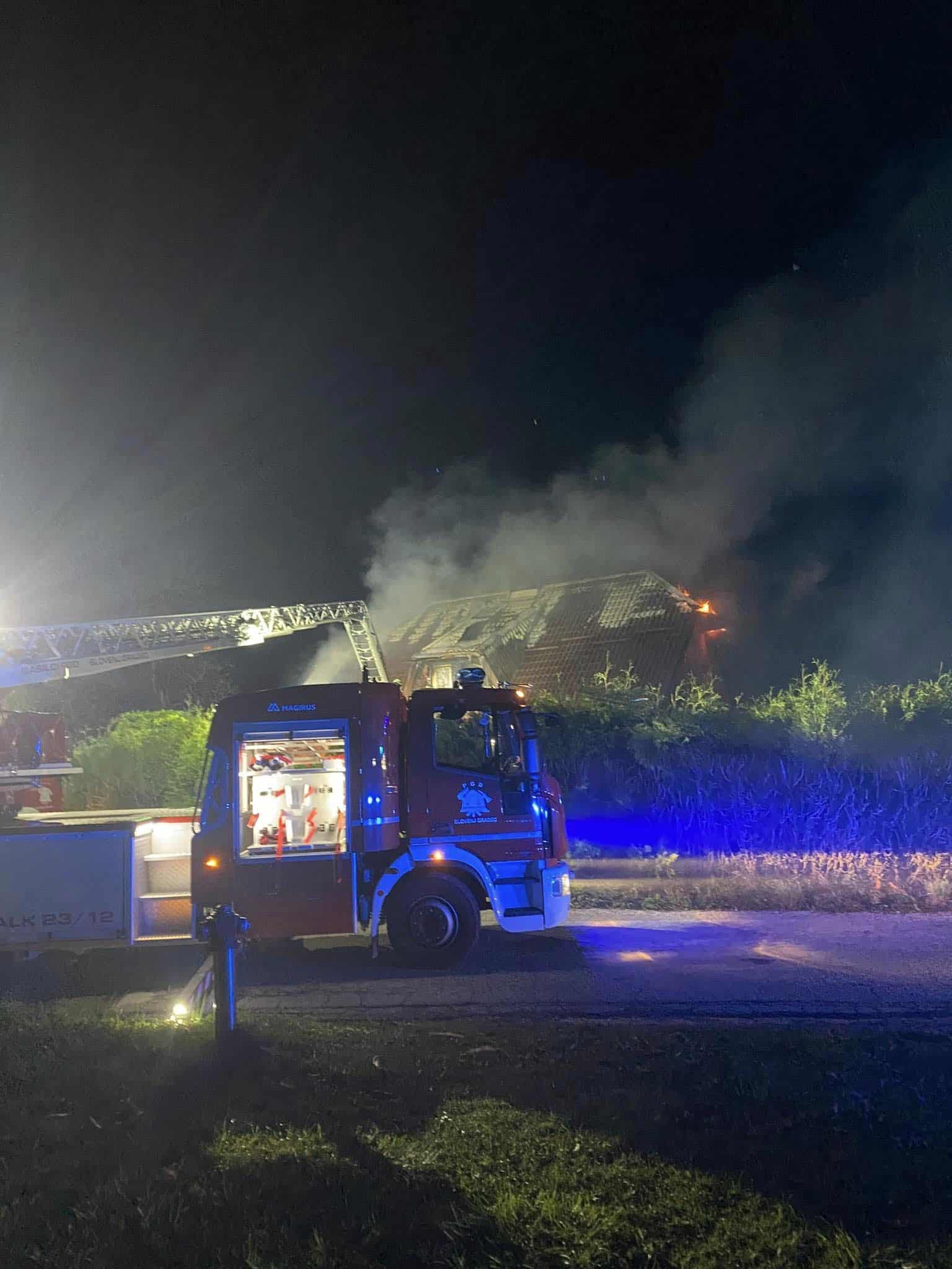 Ostrešje in zgornji bivalni del hiše je ogenj uničil. O dogodku so bile obveščene pristojne službe.