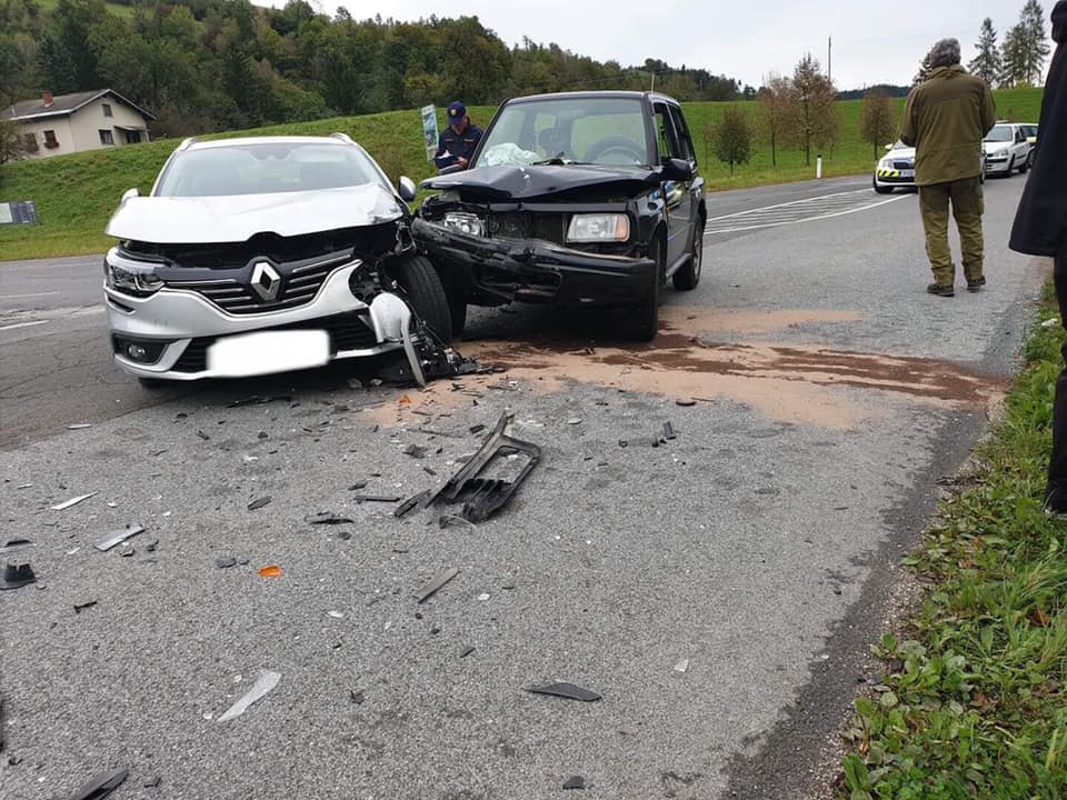 Ob 10.45 sta na cesti Prevalje–Mežica, v naselju Poljana, na območju Občine Prevalje, v križišču trčili osebni vozili, pri čemer sta se poškodovali dve osebi.