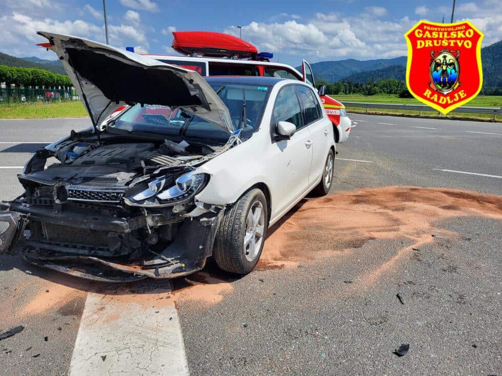 Ob 13.40 sta na Pohorski cesti v Radljah ob Dravi trčili osebni vozili. Gasilci PGD Radlje ob Dravi so oskrbeli dve poškodovani osebi in ju prepeljali v dežurno ambulanto v Radljah ob Dravi.