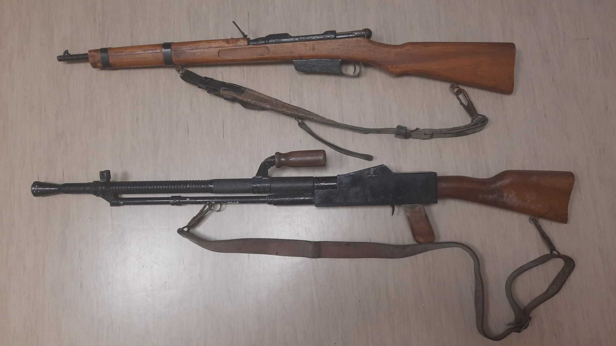 Radeljski policisti so med hišno preiskavo našli še orožje, za katero osumljena nista imela dovoljenja in sicer dve vojaški puški in proti tankovsko mino. Orožje so zasegli.