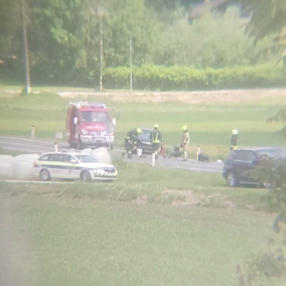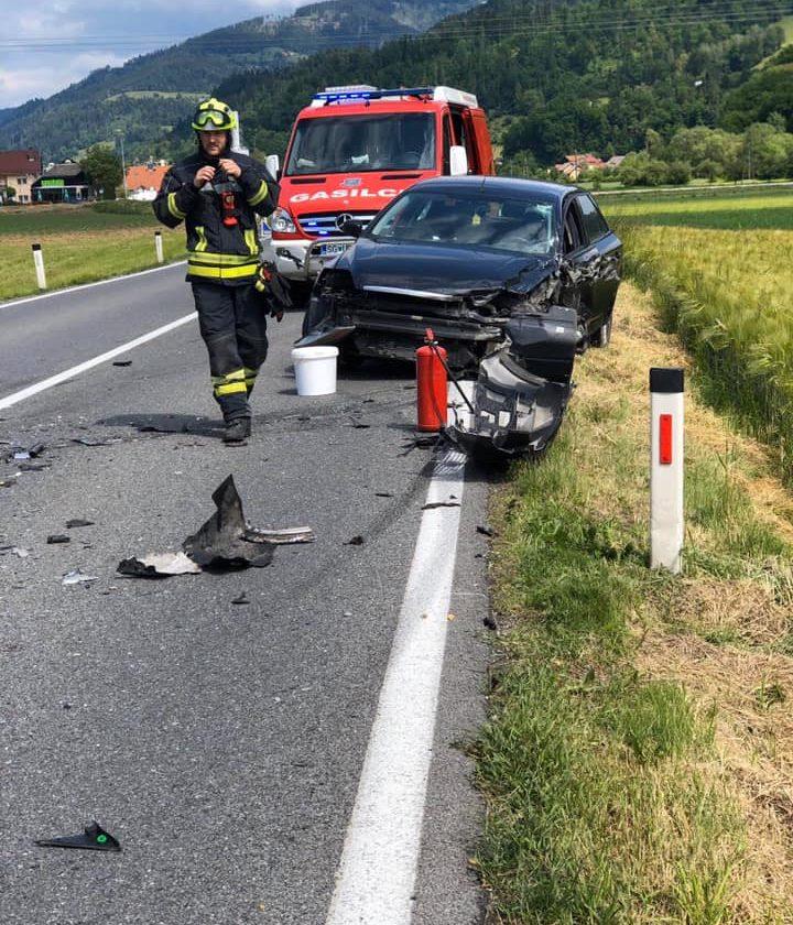 Ob 10.33 sta v Šentjanžu, občina Dravograd, trčili osebno in kombinirano vozilo. Posredovali so gasilci KGZ Ravne na Koroškem in PGD Slovenj Gradec, ki so zavarovali kraj dogodka, z vpojnimi sredstvi posuli iztekle motorne tekočine, na vozilih odklopili akumulatorja, usmerjali promet in pomagali cestnemu podjetju pri odstranitvi vozil s cestišča. Eno poškodovano osebo so oskrbeli reševalci ZRCK Ravne na Koroškem in jo prepeljali v SB Slovenj Gradec.
