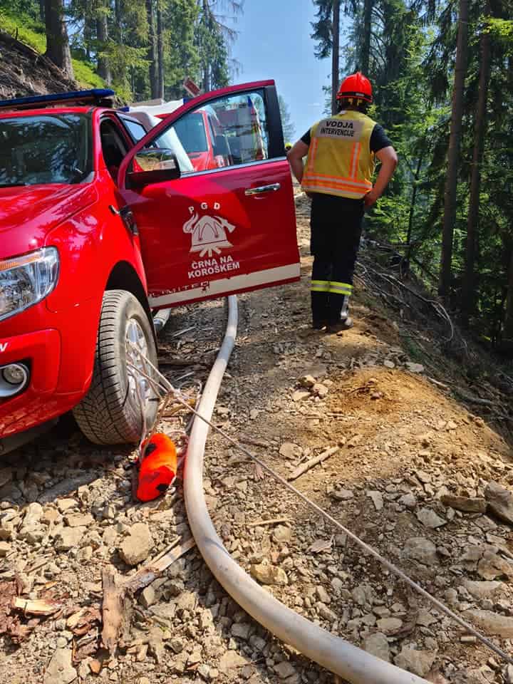 "Naši fantje so na prošnjo kolegov iz Črne odhiteli na pomoč pri gašenju gozdnega požara na težko dostopnem terenu v Topli. Na terenu je poleg domačega društva še PGD Prevalje, PGD Mežica PGD Kotlje in PGD Ravne na Koroškem. Fantje iz terena pošiljajo video. Varno na intervenciji fantje in dekleta," so zapisali na Facebook strani PGD Prevalje.