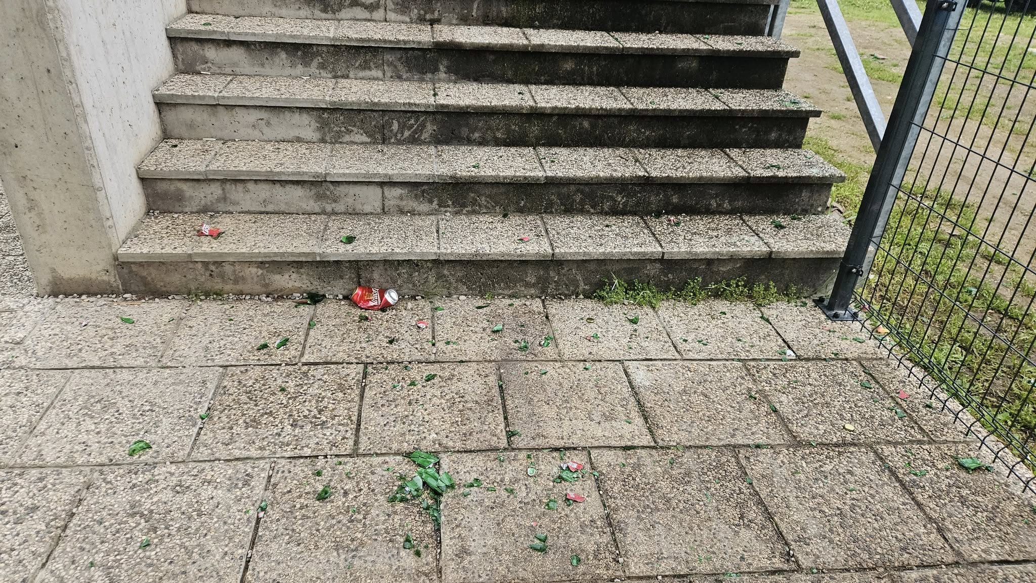 Neznani storilec je poškodoval par metrov fasade športne dvorane in žičnato ograjo ob nogometnem igrišču.