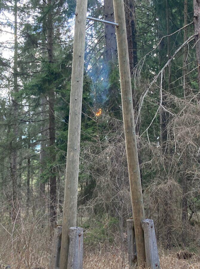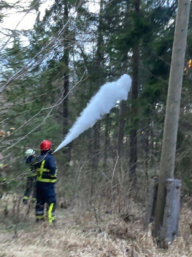 Ob 17.29 se je v naselju Brdinje zaradi vetra podrlo drevo na električni vodnik in zagorelo. Gasilci KGZ Ravne in PGD Kotlje so goreče drevo pogasili. Dežurni delavci Elektra Celje so pred tem izklopili električno energijo.