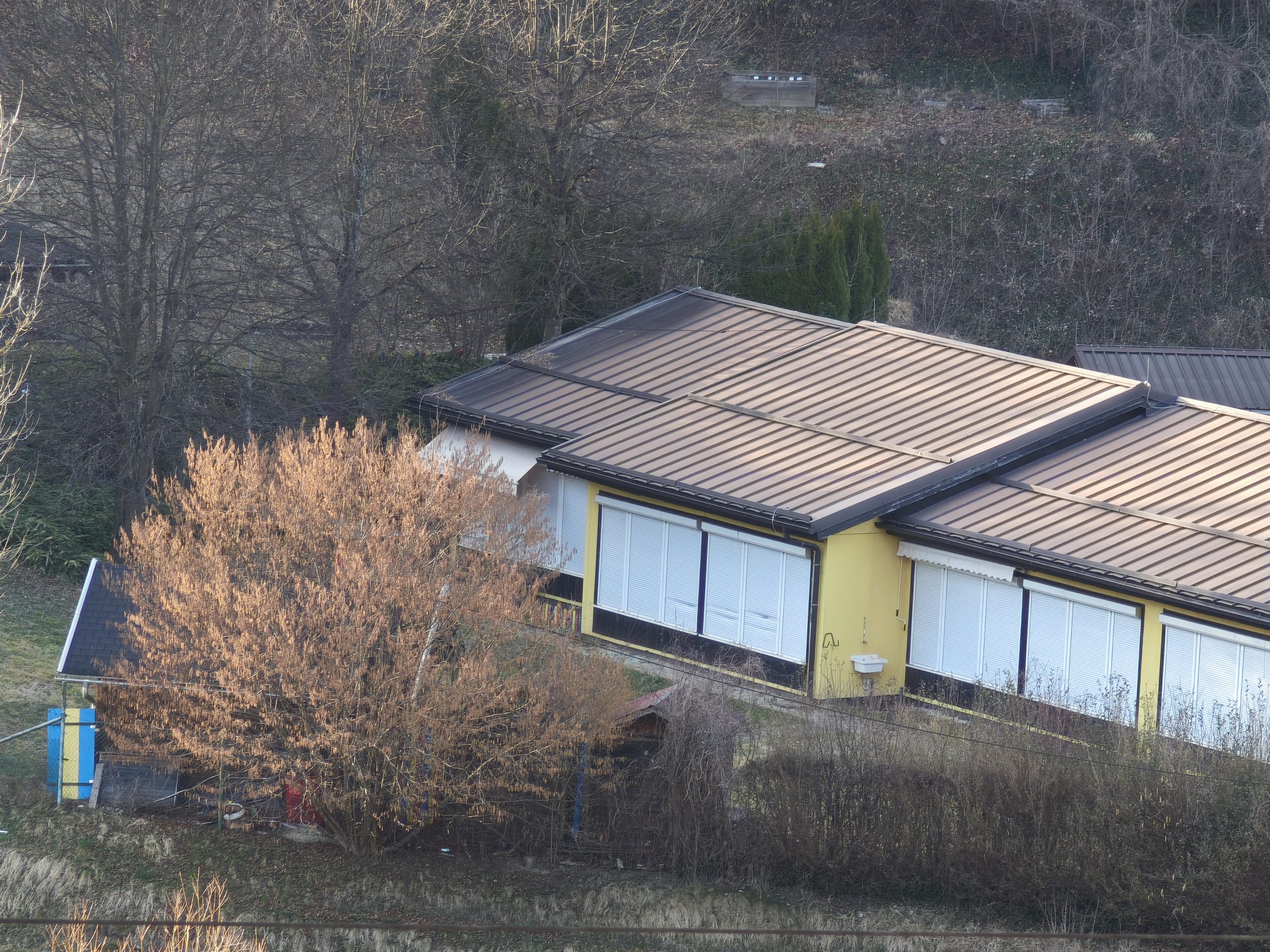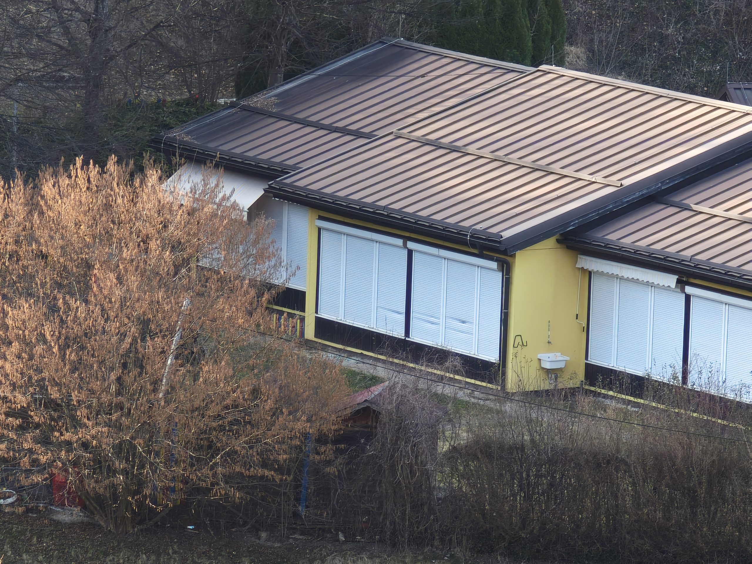 Poleg tega, da so se s palicami lotili rolet, so z zgornje strani vrtca, kjer se nahaja še del vrtička, metali tudi večje kamne na streho.