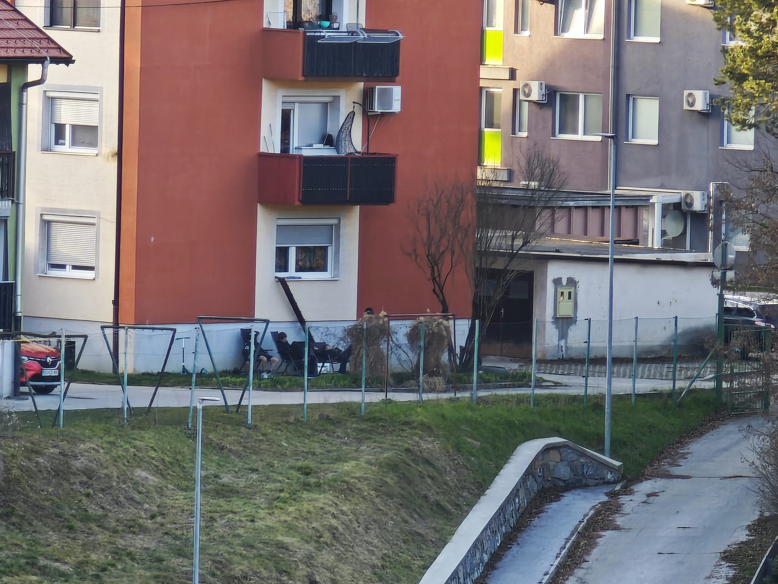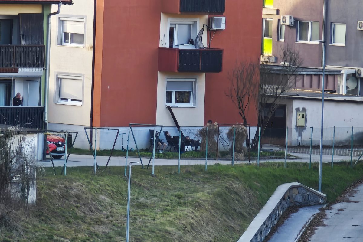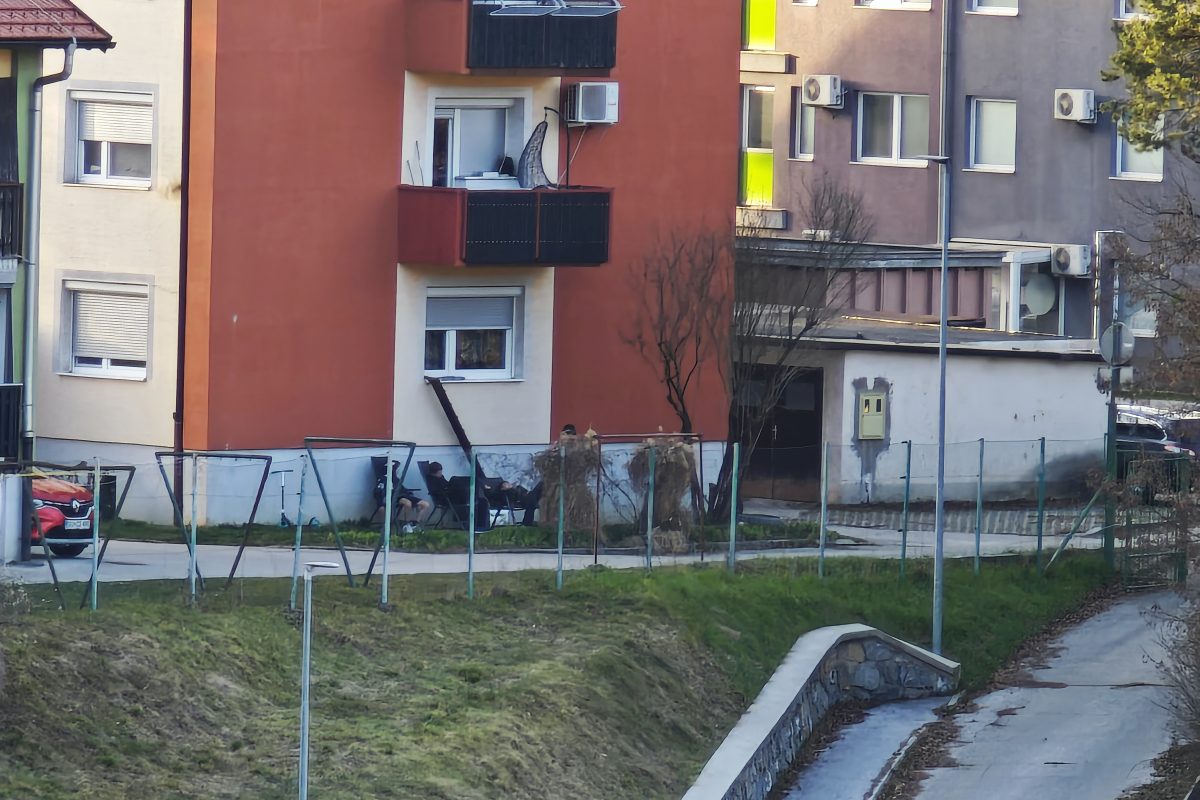 Po tem, ko so si privoščili ''popoldansko rekreacijo'', se je skupina vandalov odpočila na stolih za blokom v bližini vrtca.