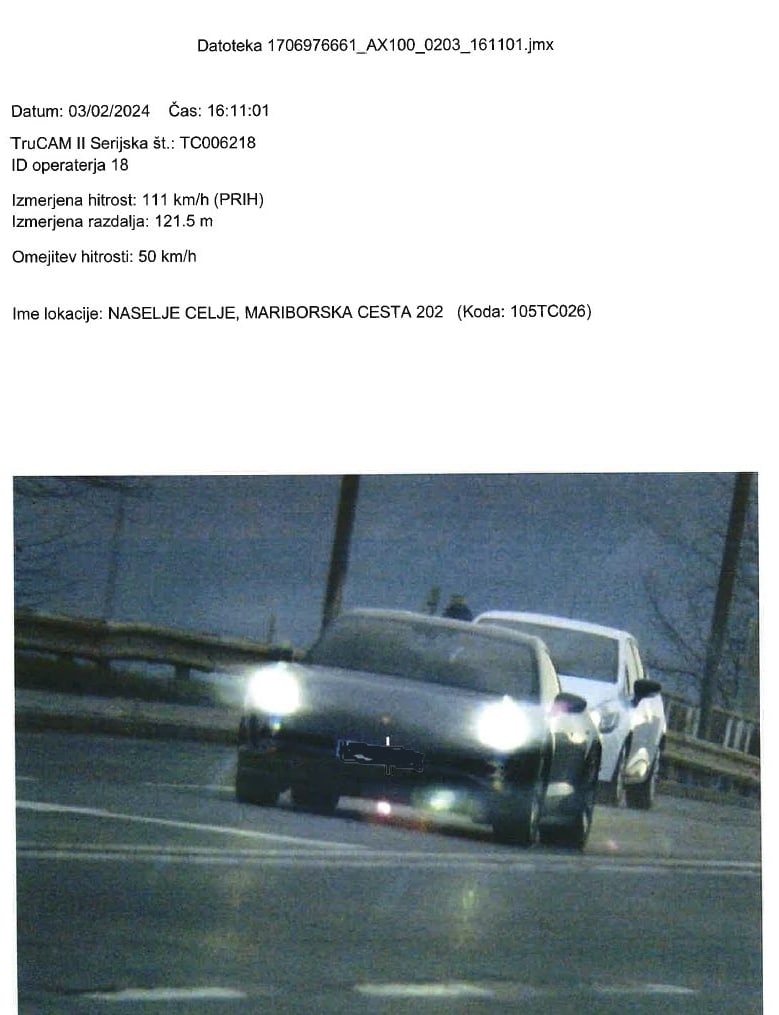 Voznik, ki so ga obravnavali policisti, je vozil 111 km/h, kar pomeni, da je ob upoštevanju varnostne razlike, ki jo določa Pravilnik o meroslovnih zahtevah za merilnike hitrosti v cestnem prometu, vozil najmanj za 55 km/h več, kot je s prometnim pravilom dovoljena hitrost vožnje v naselju.