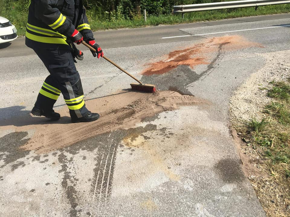Ob 8.23 se je na Selah, na območju Občine Slovenj Gradec, vozniku kombiniranega vozila na tovornem delu prevrnil večji akumulator, iz katerega je iztekla kislina tudi po vozišču.