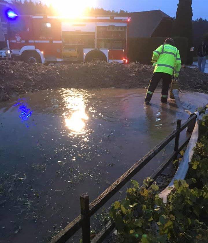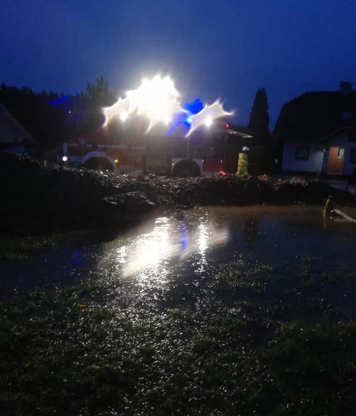 - Zaradi močnega dežja so na območju občine Slovenj Gradec posredovali gasilci PGD Legen, ki so črpali vodo, s prekopavanjem preusmerili tok meteorne vode, s protipoplavnimi vrečami pa zavarovali več stanovanjskih objektov, da do zalitja ni prišlo.
