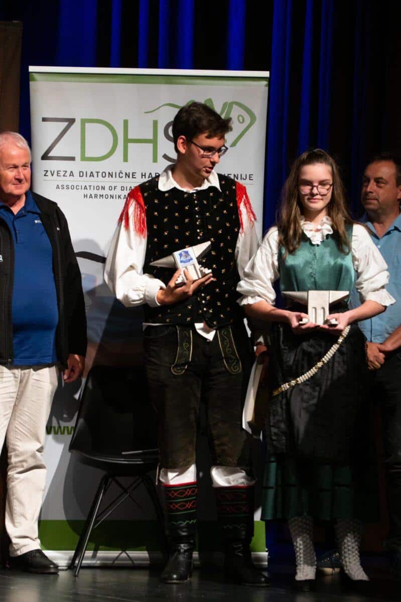 Z najvišjim številom točk sta strokovno žirijo najbolj prepričala Kaja Završnik (diatonična harmonika - 98 doseženih točk) ter Benjamin Merzdovnik (klavirska harmonika - 97 doseženih točk) in tako postala absolutna zmagovalca tekmovanja. Kaja se je predstavila s skladbama Se že svita in V gozdu Martuljku, Benjamin pa s skladbama Cesta, ki vodi domov ter Na neki popoldan.