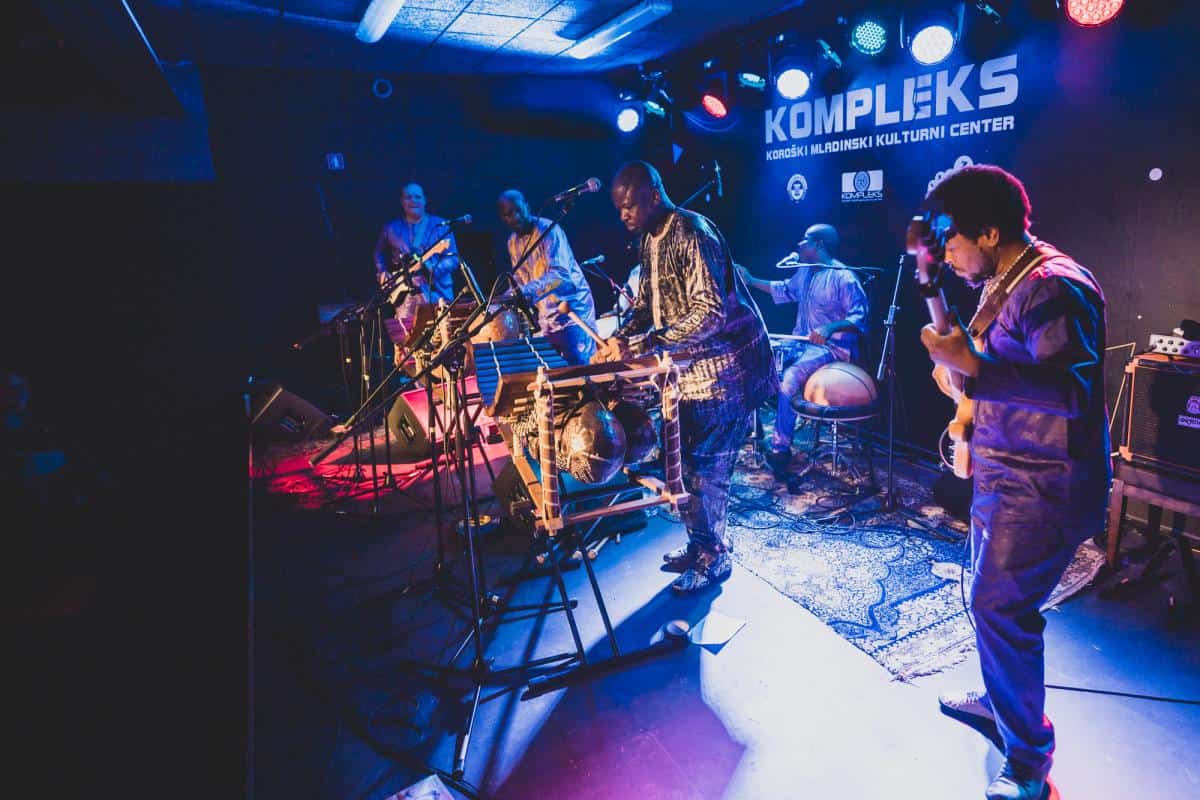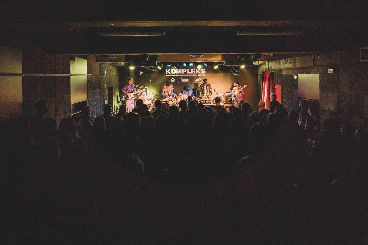 Na večer pred slovenskim kulturnim praznikom je v KMKC Kompleks na Ravnah na Koroškem nastopila zanimiva afriško-slovenska zasedba.