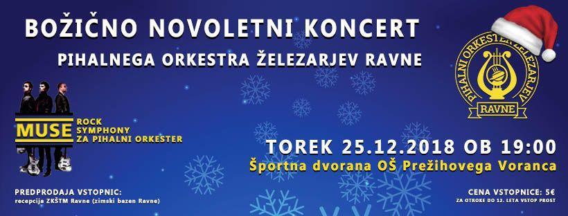 Božično novoletni koncert, ki bo 25. 12. 2018 ob 19.00 v športni dvorani pri Osnovni šoli Prežihovega Voranca na Ravnah.