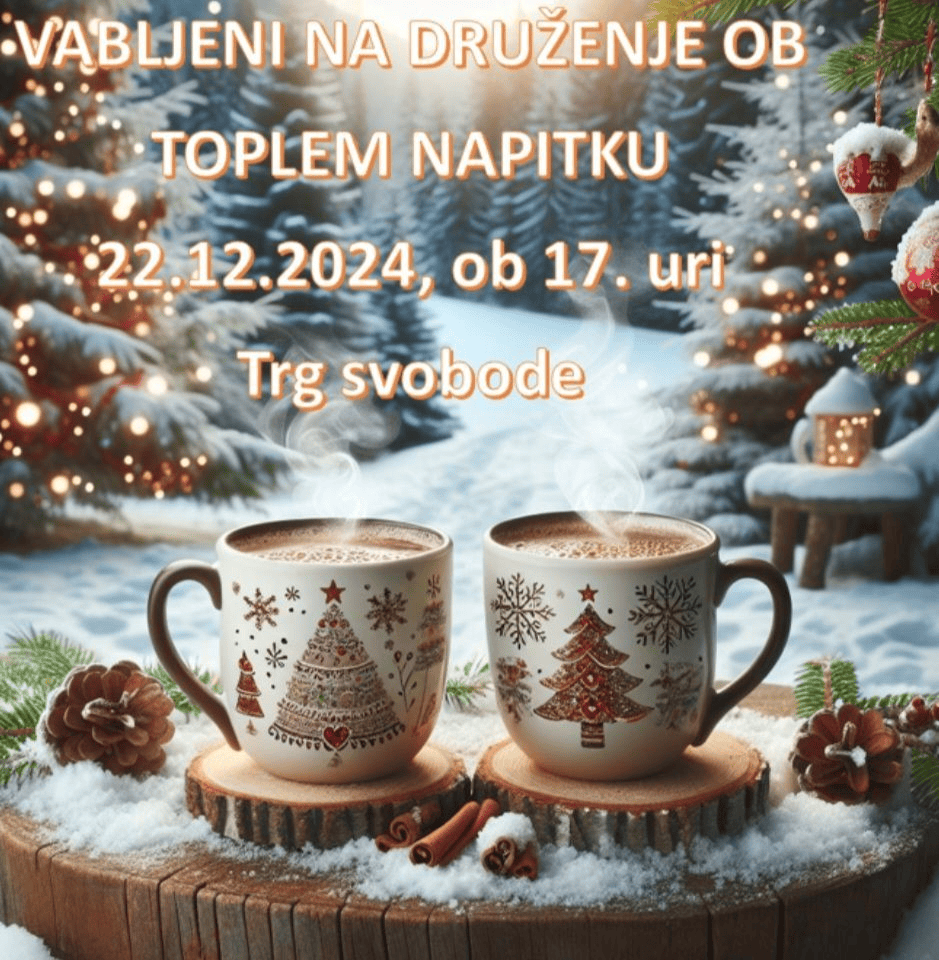 V nedeljo, 22. decembra 2024, ob 17. uri vas Mešani komorni zbor Carinthia Cantat vabi na posebno praznično druženje ob toplem napitku na Trgu svobode v Pravljični vasi v Slovenj Gradcu.