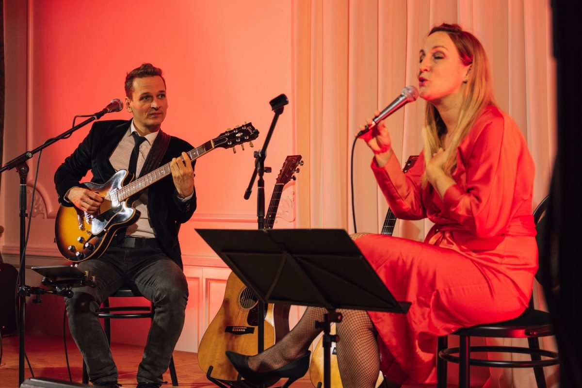 Tokrat sta v dvorcu na dan zaljubljenih nastopila nastopila Eva Hren in kitarist Miha Plantarič.