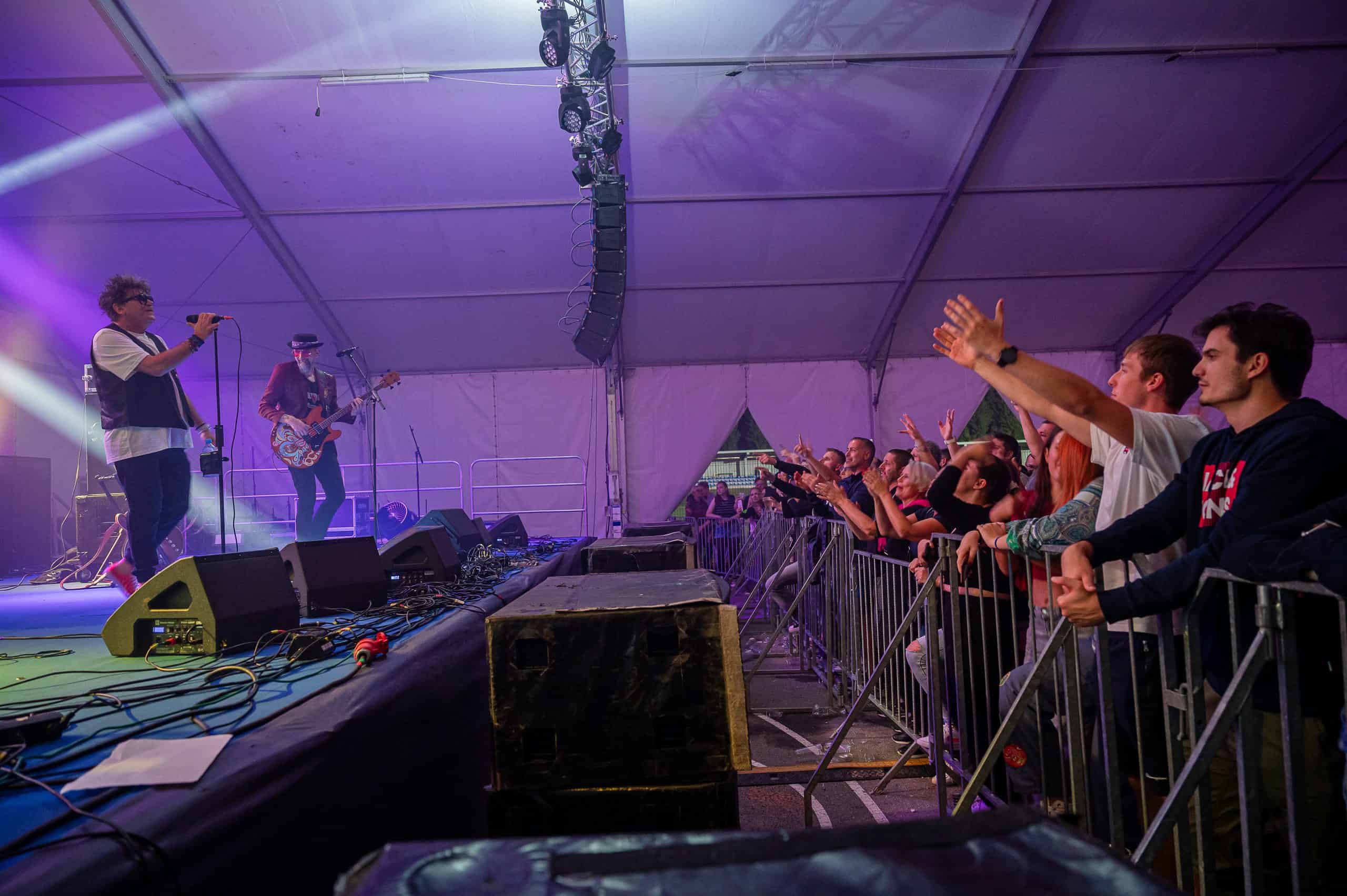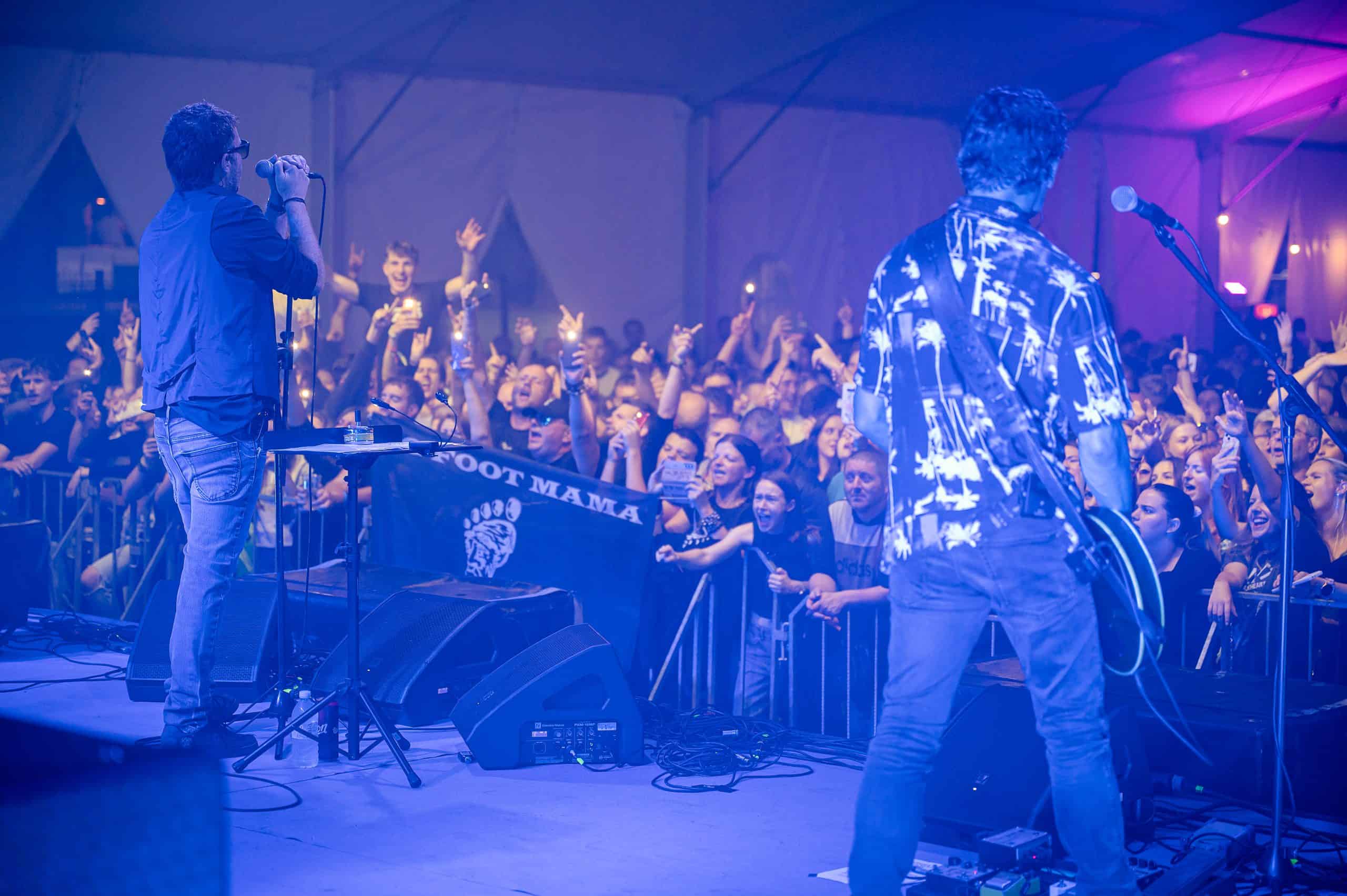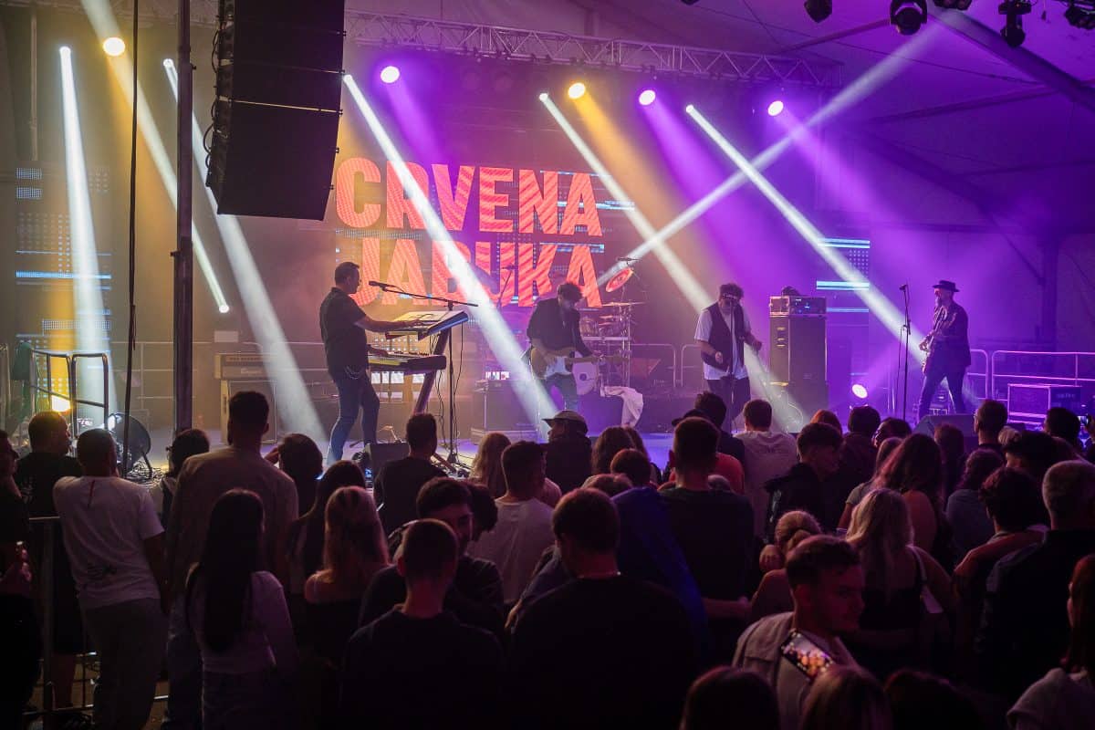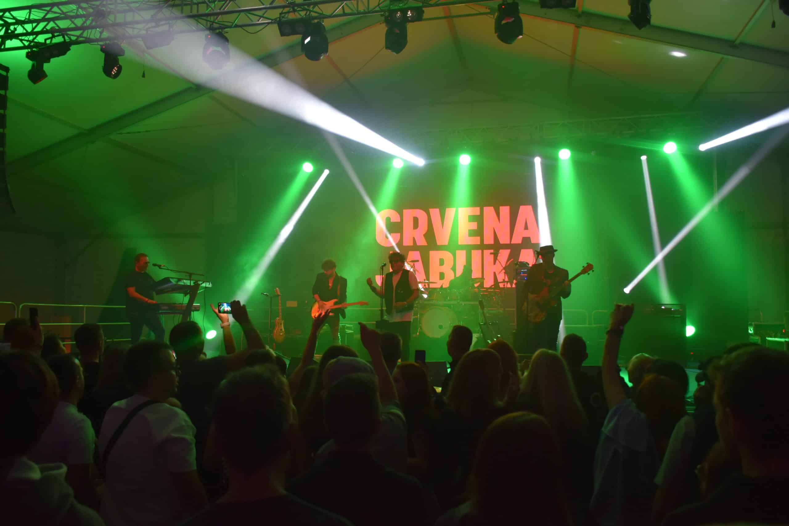 Pod šotorom v športnem parku Ugasle peči je za ogrevanje poskrbela domačinka Nastja Gabor, ki je pripravila teren za dve legendarni rock skupini - Big Foot Mamo in Crvena jabuka.