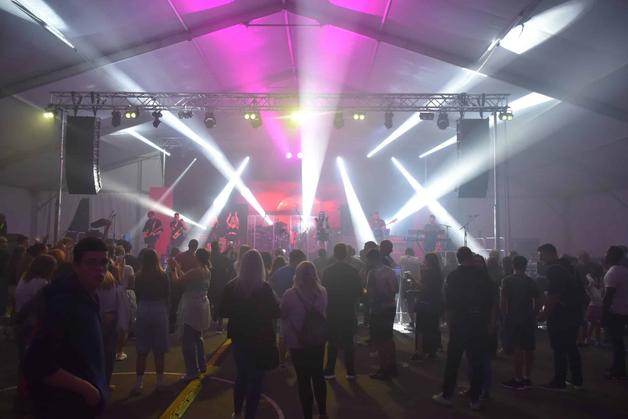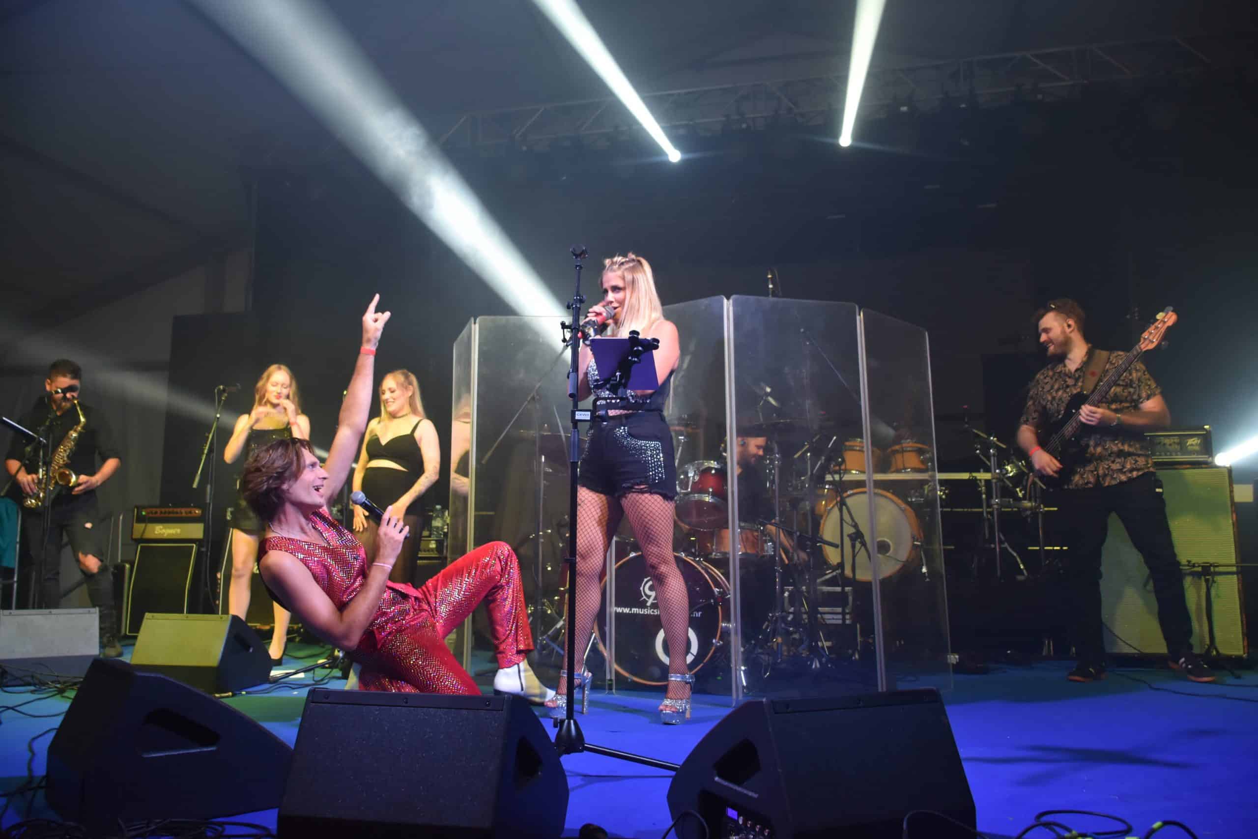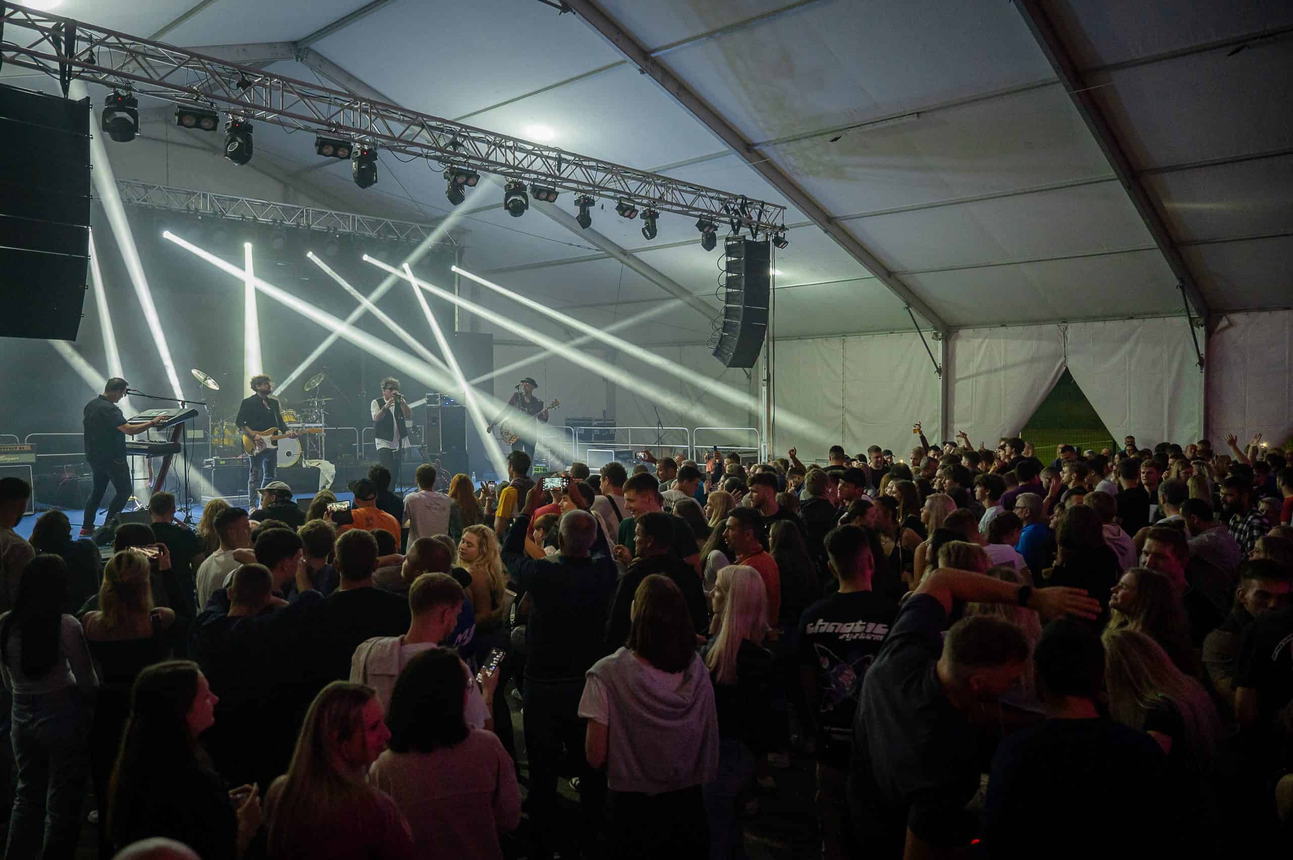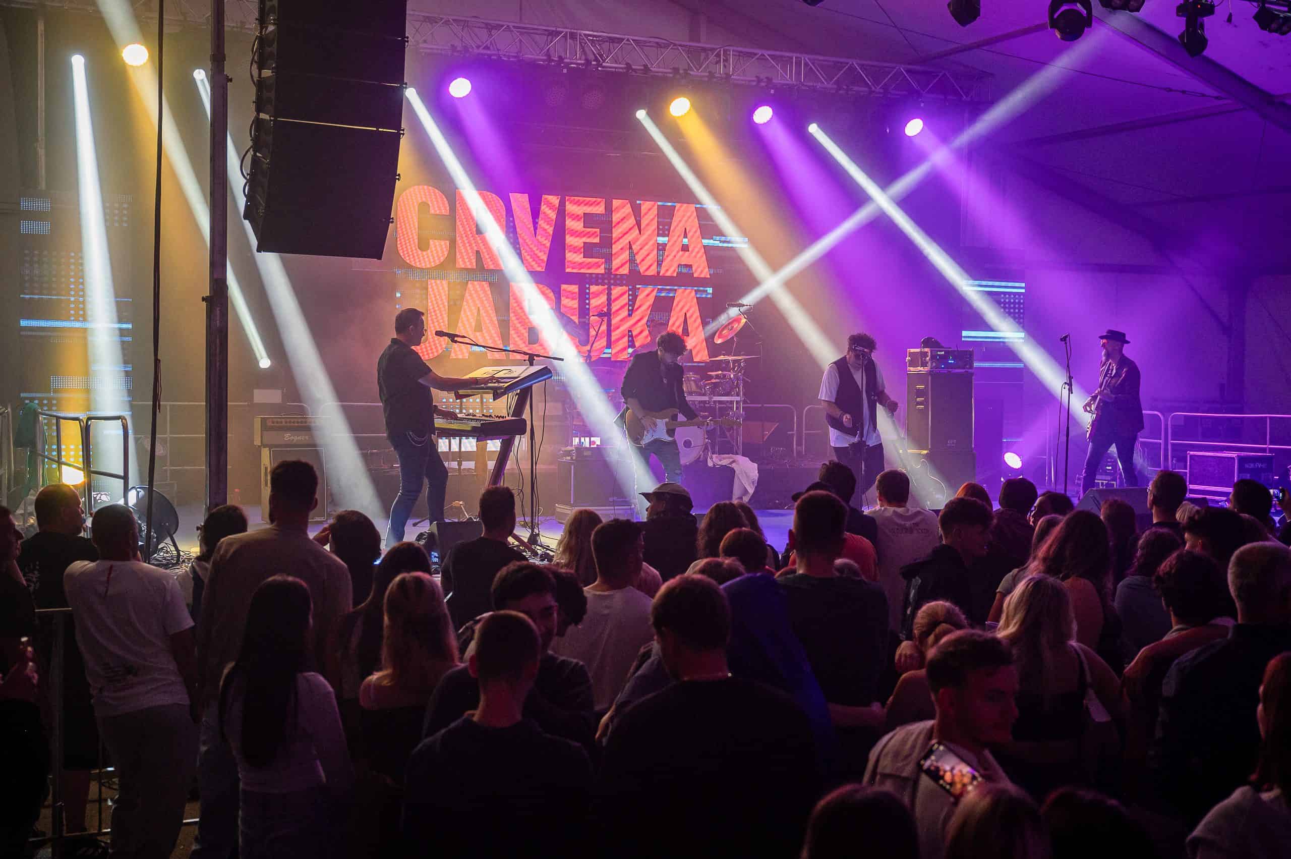 Pod šotorom v športnem parku Ugasle peči je za ogrevanje poskrbela domačinka Nastja Gabor, ki je pripravila teren za dve legendarni rock skupini - Big Foot Mamo in Crvena jabuka.