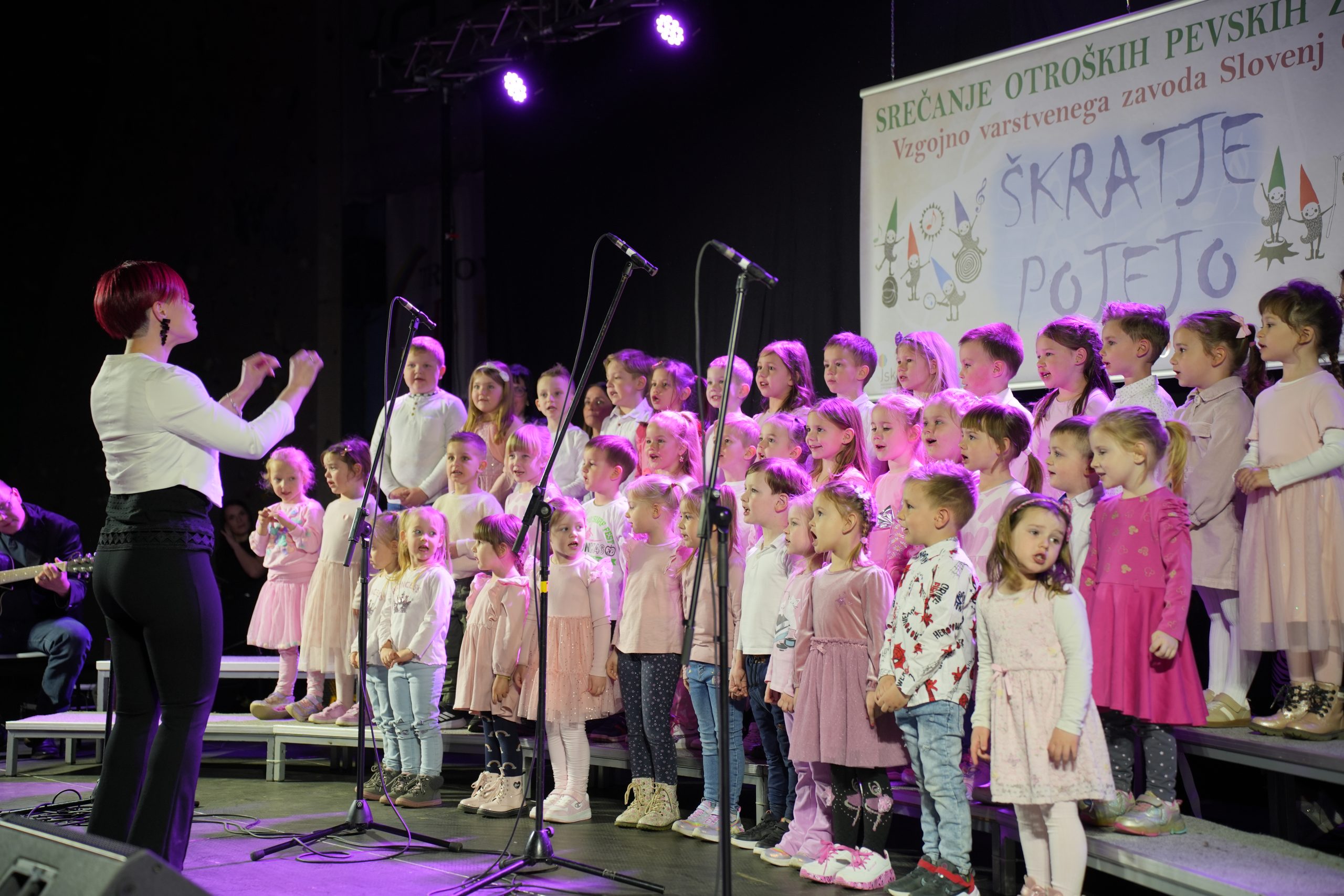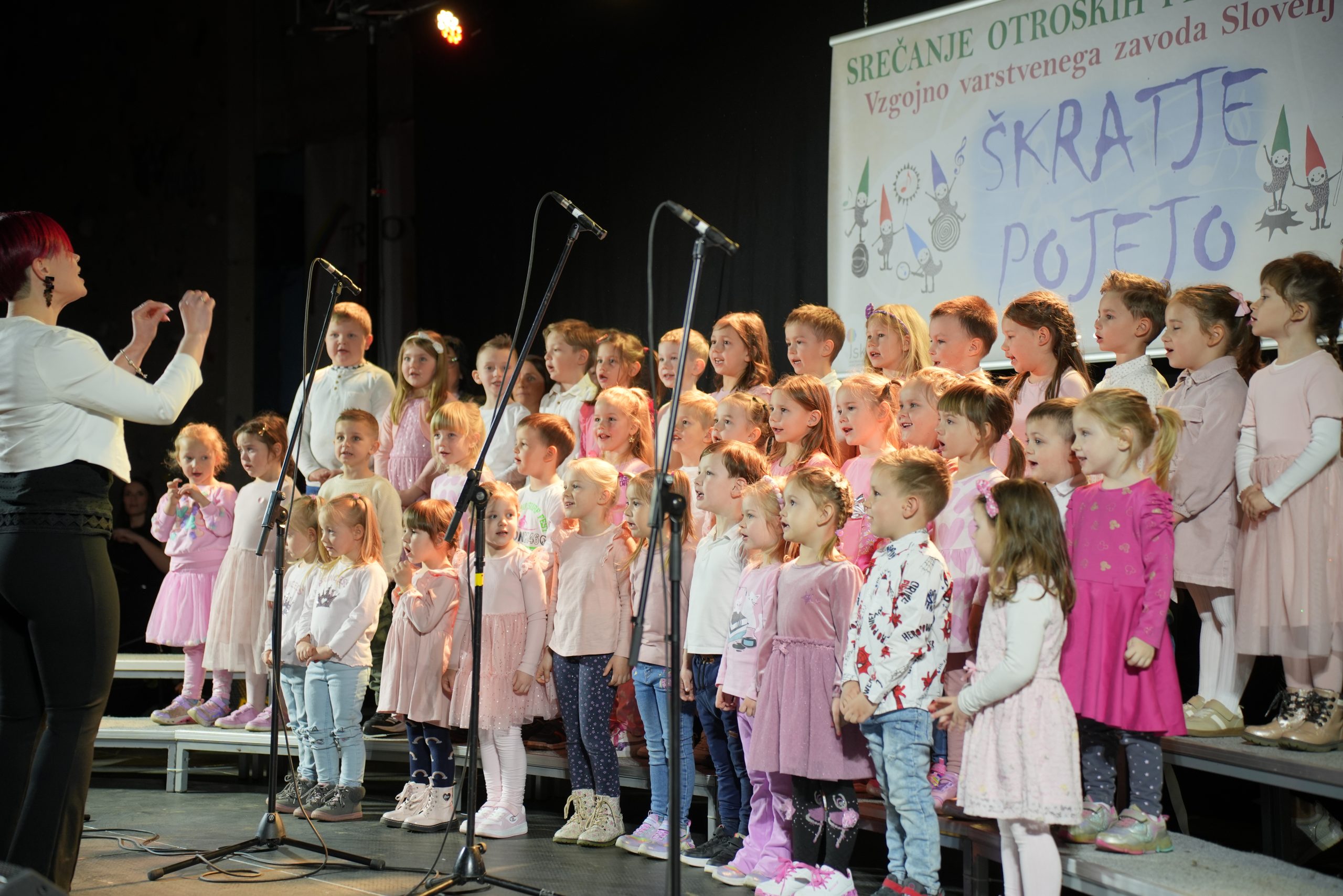 Kaj kmalu so zazvenele otroške pesmi, ki so jih pod mentorstvom vzgojiteljic predstavili otroci enot VVZ Slovenj Gradec. Nastopili so: Legen (Gozdni škrat), Maistrova (Škratica Mica), Mislinja (Sončni škrat), Podgorje (Škrat Bučko), Pameče (Škrat Radovednež), Šmartno (Leseni škrat) in pevski zbor vzgojiteljic in otrok VVZ Slovenj Gradec. Vse od slovenskih otroških pesmi, pa do angleških zimzelenih pesmi je bilo slišati in gledalci so otroke ponosno in z navdušenjem nagradili z velikimi aplavzi.