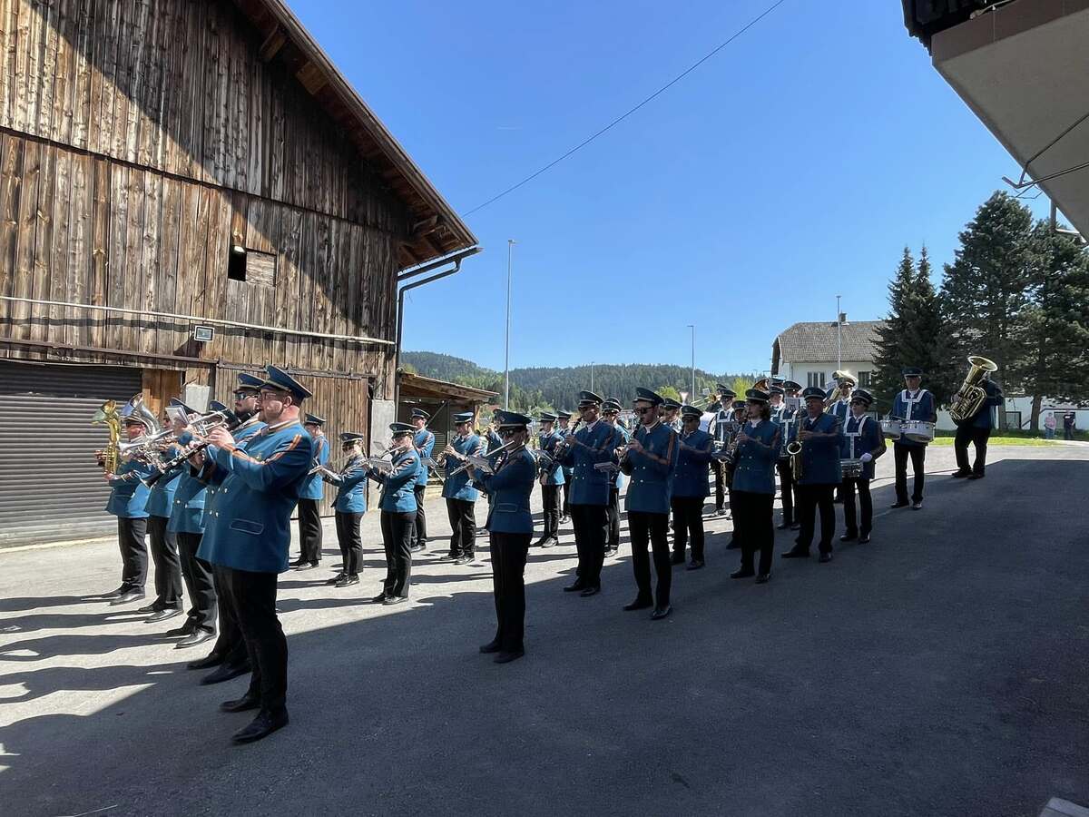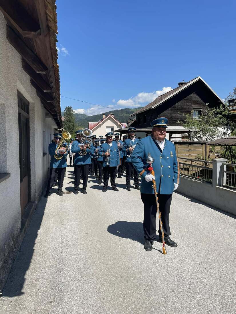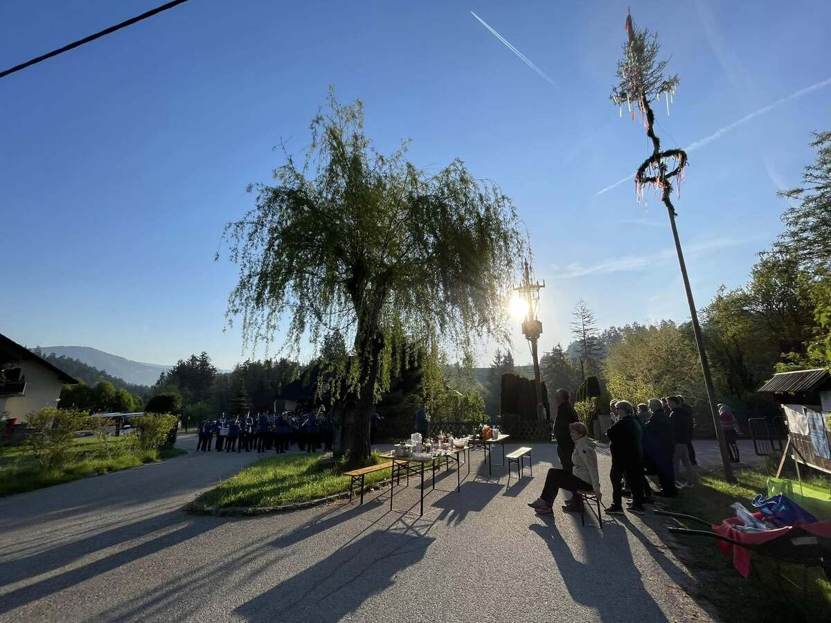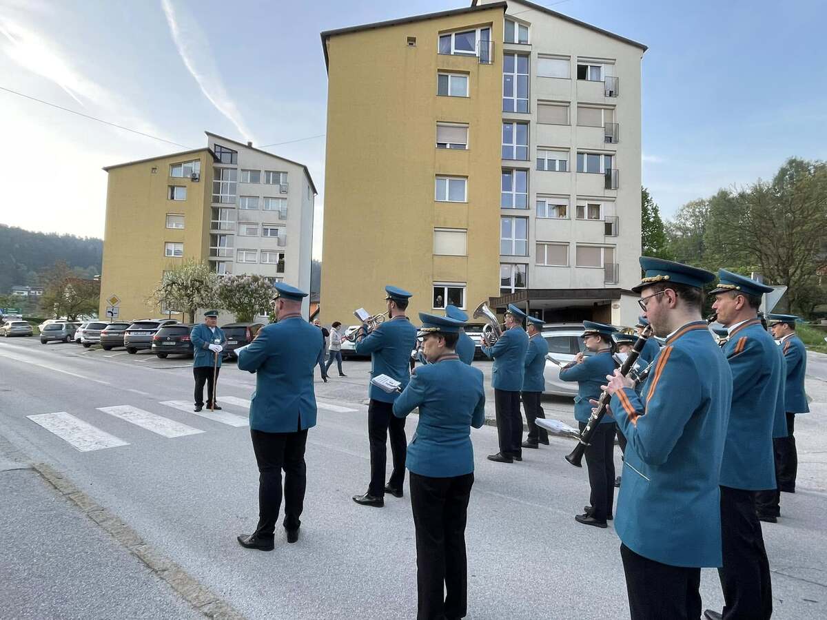 Že v zgodnjih jutranjih urah so krajanke in krajane prebudili živahni zvoki prvomajske budnice, ki jih je pričaral Pihalni orkester Železarjev Ravne.