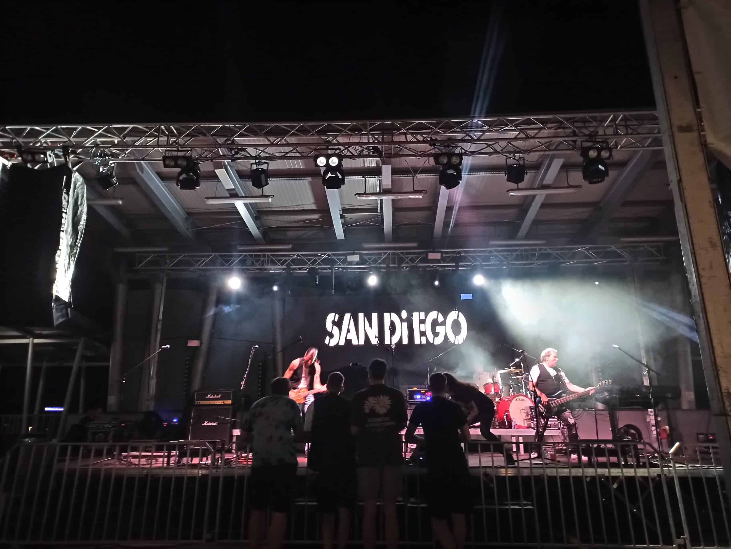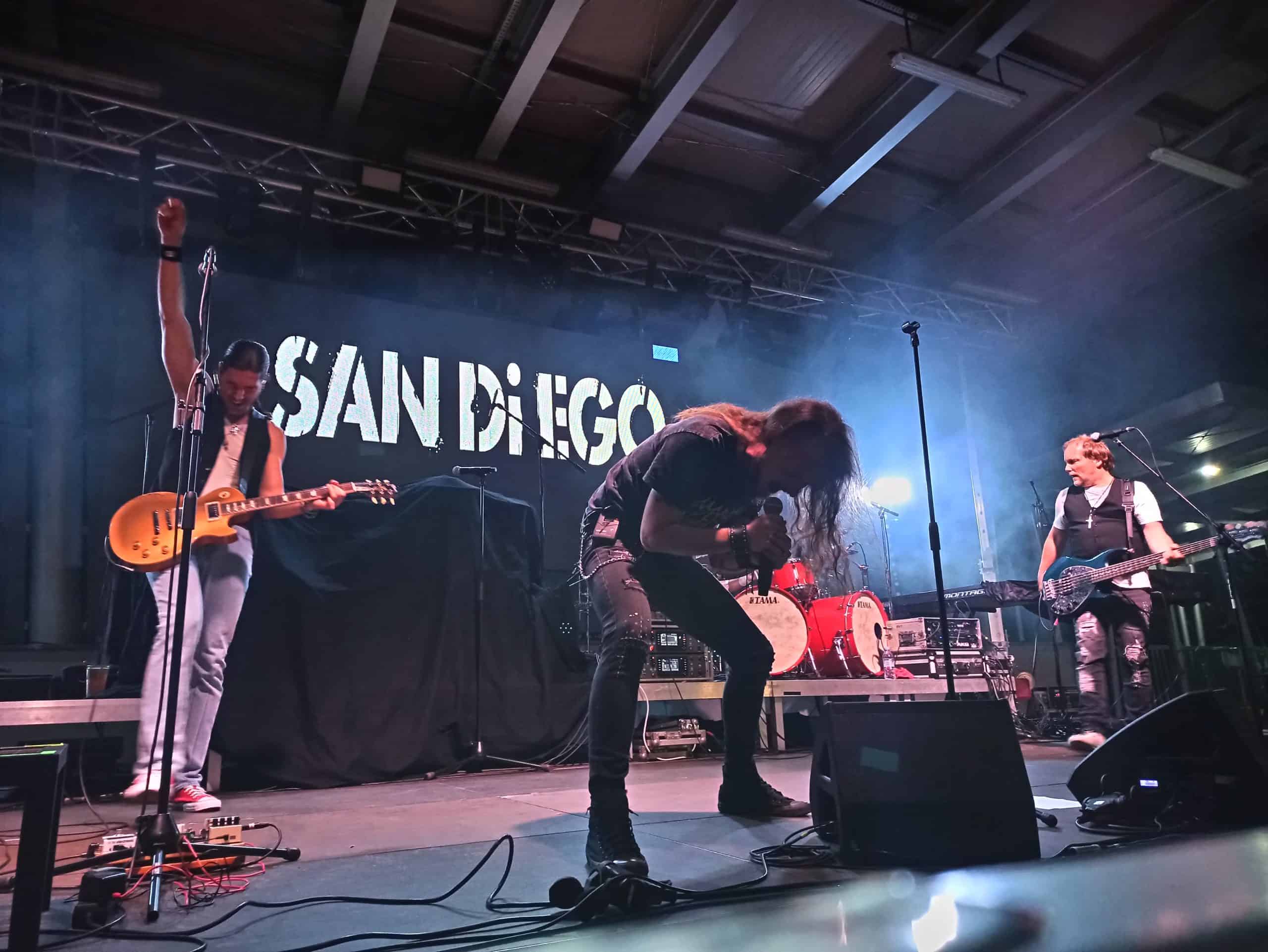 Prireditveni prostor Lukna se je do 20. ure že dodobra napolnil, saj so kot predskupina nastopili San Di Ego, ki so poskrbeli za ogrevanje množice pred glavnim dogodkom večera. Fantje so dvigali vzdušje in temperaturo s preigravanjem svojih avtorskih komadov, zbrano množico pa so navdušili tudi s priredbami znanih rockerskih komadov, saj so zaigrali marsikatero pesem slavnih skupin, kot so AC/DC, Guns'n'Roses, Europe in mnogih drugih.